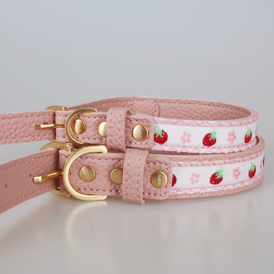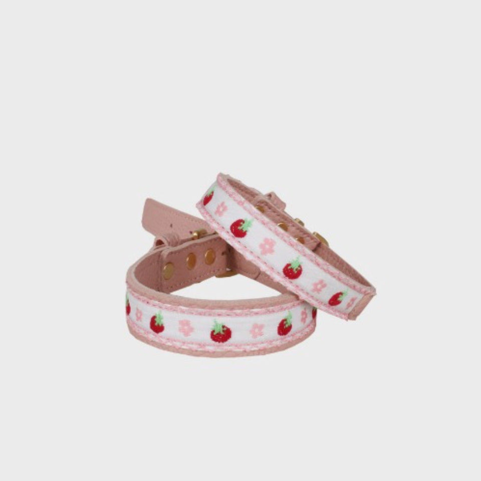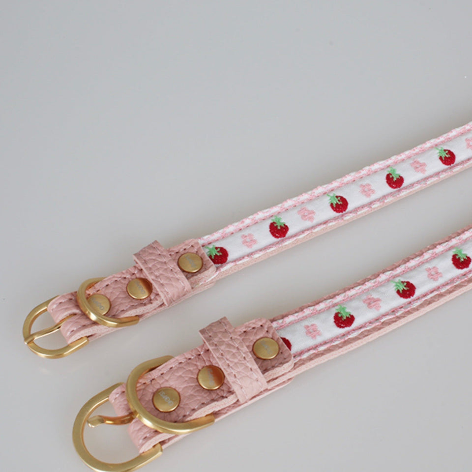 『イチゴとフラワーの刺繍が美しい最高級レザーカラー』