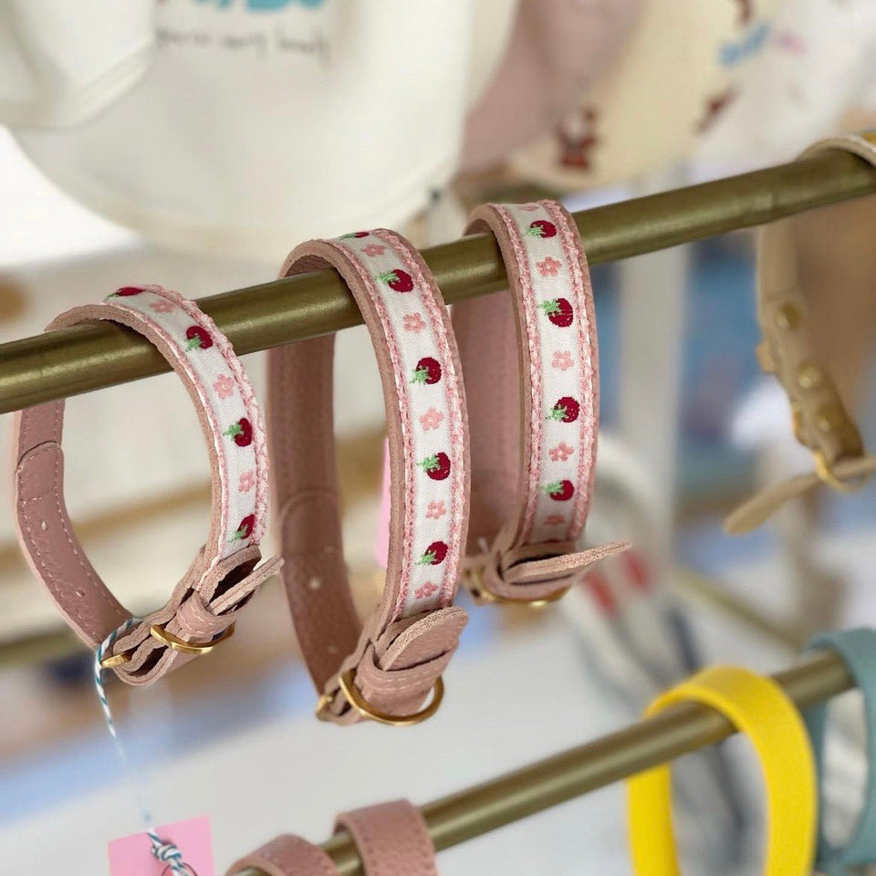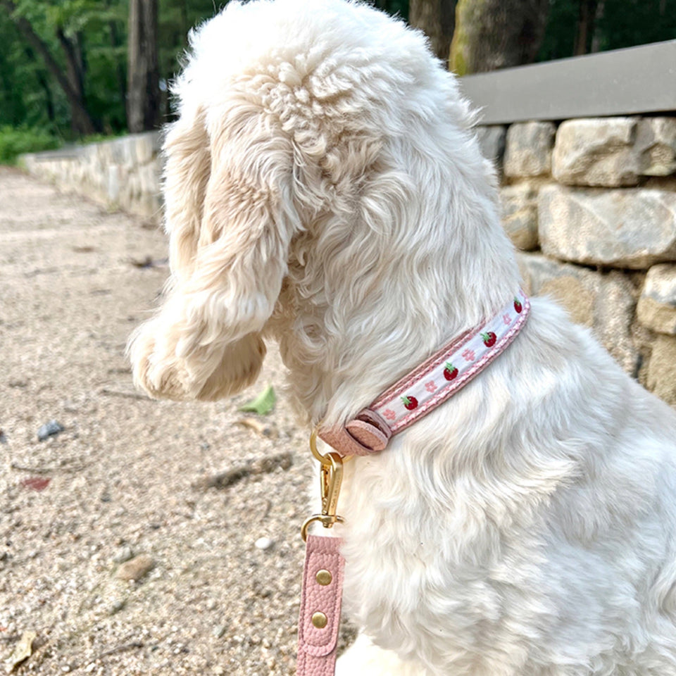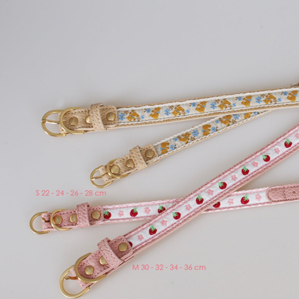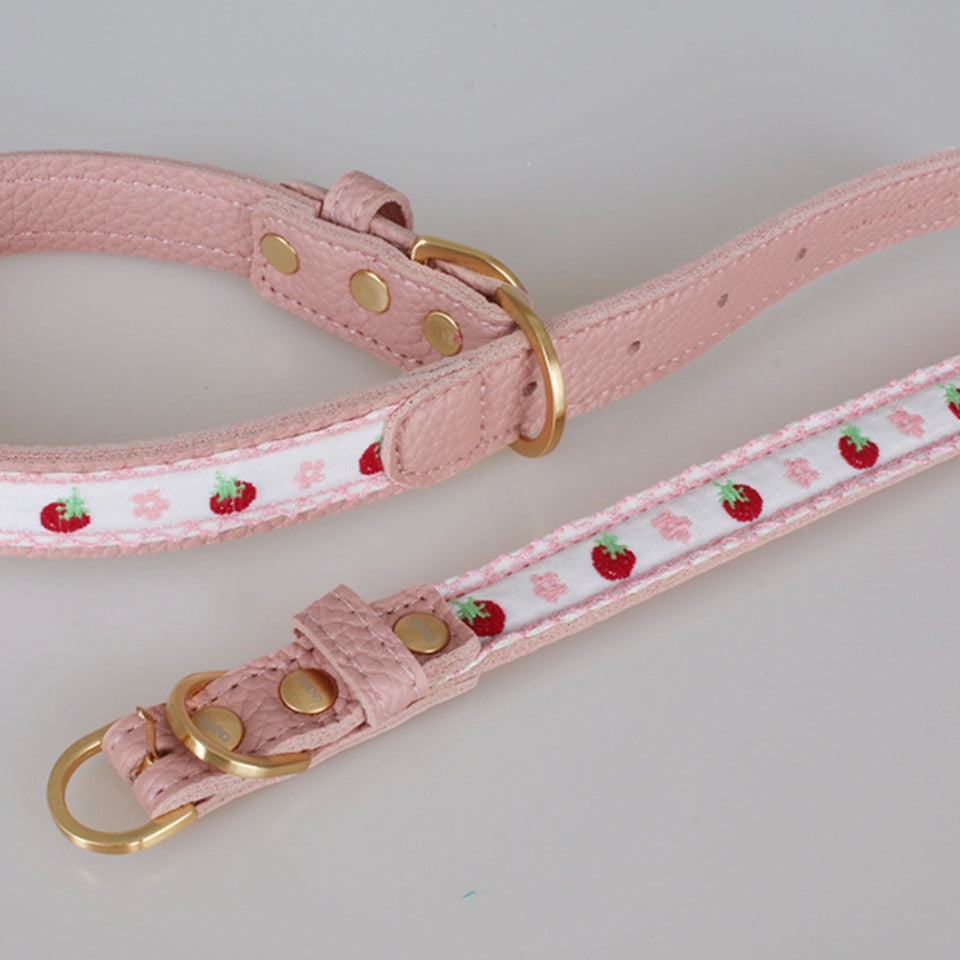 『イチゴとフラワーの刺繍が美しい最高級レザーカラー』