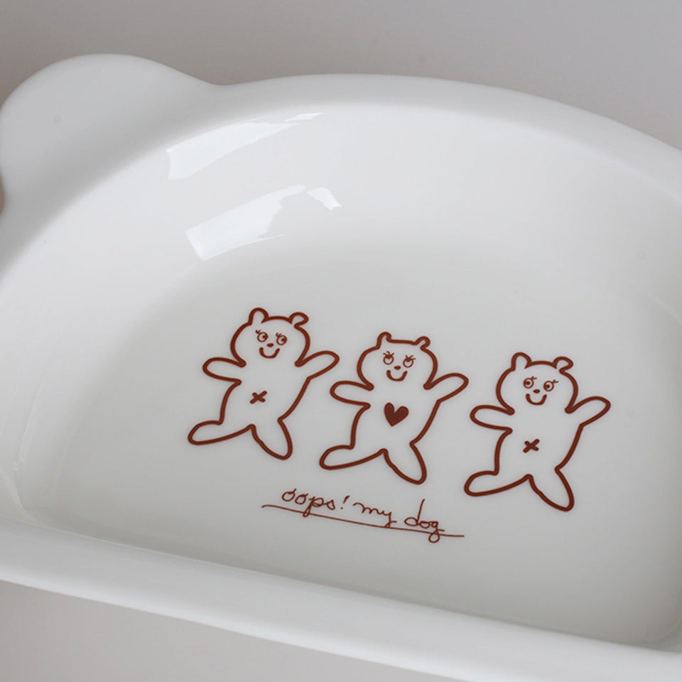 "OOPS! MY DOG"の食器は全てボーンチャイナ(骨灰磁器)で、高純度で精製した天然骨灰が40%以上混合され、1300度以上の高温で焼成された高品質の陶磁器食器になります。