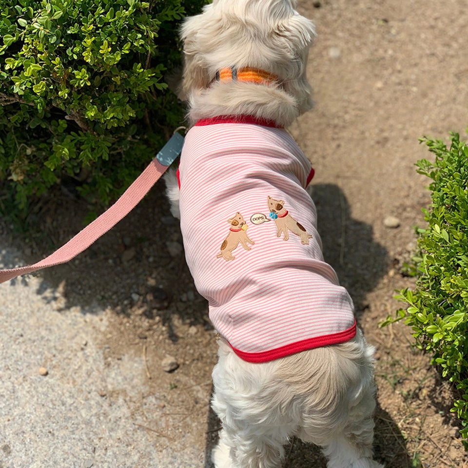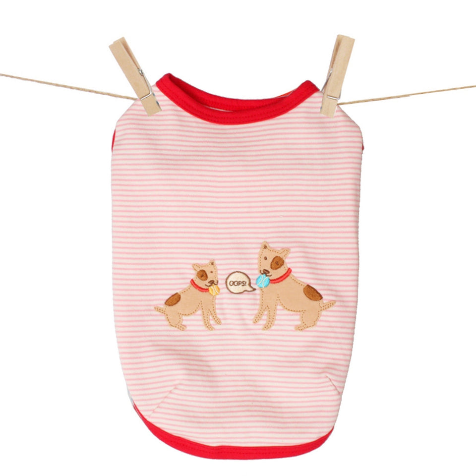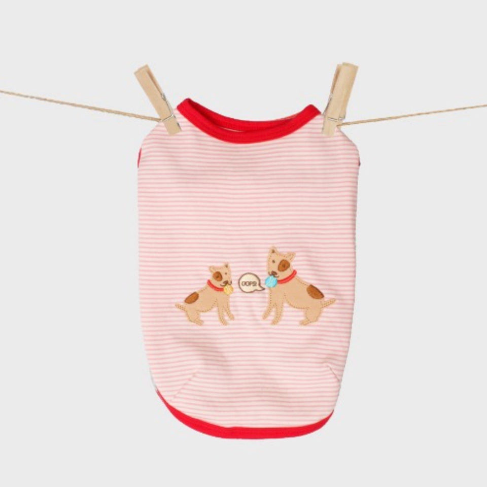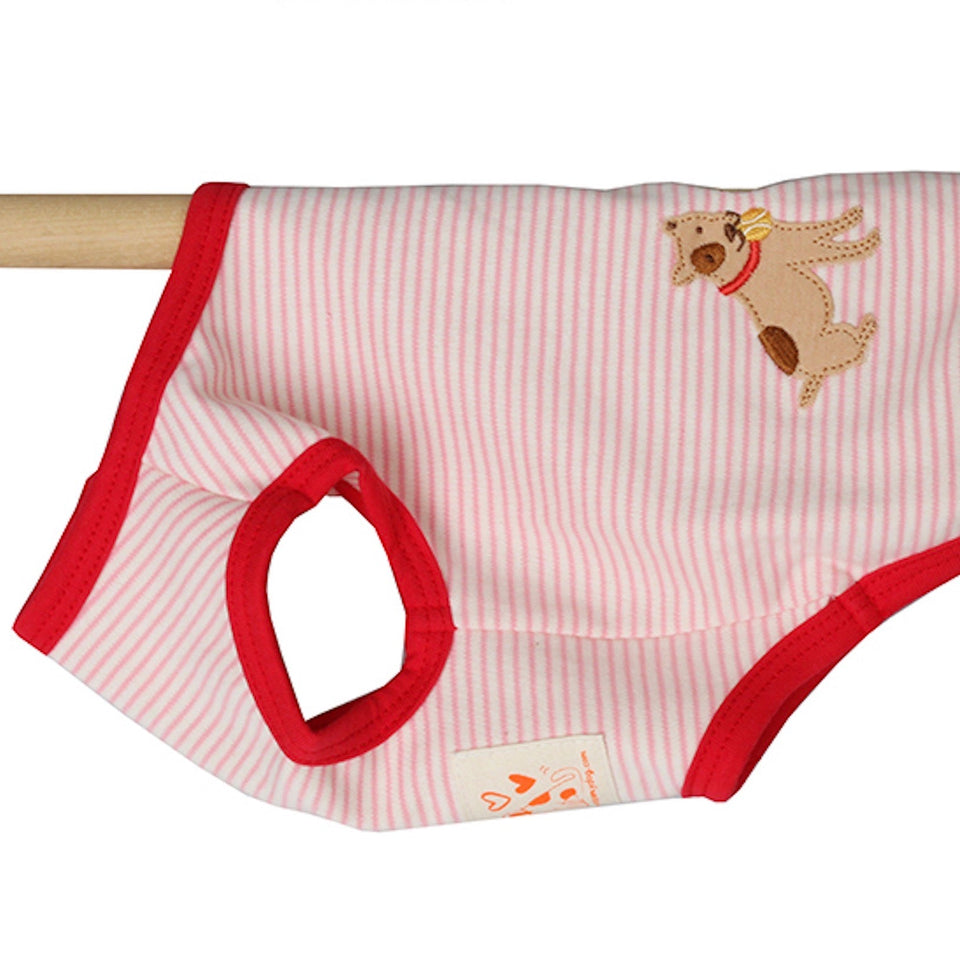 『ボーダー柄に犬の刺繍が可愛いオーガニックコットン100%のスリーブレス』