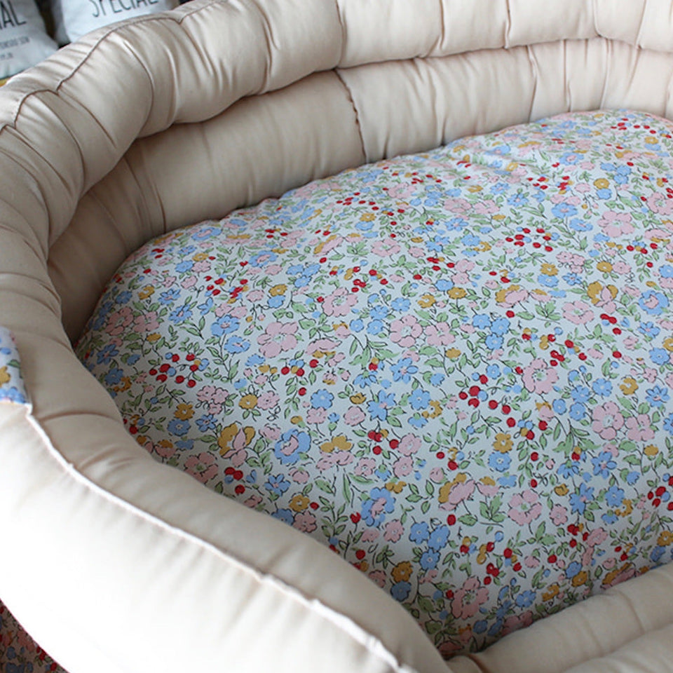 小花柄の切り替えが可愛いピュアコットン100%のベッド』