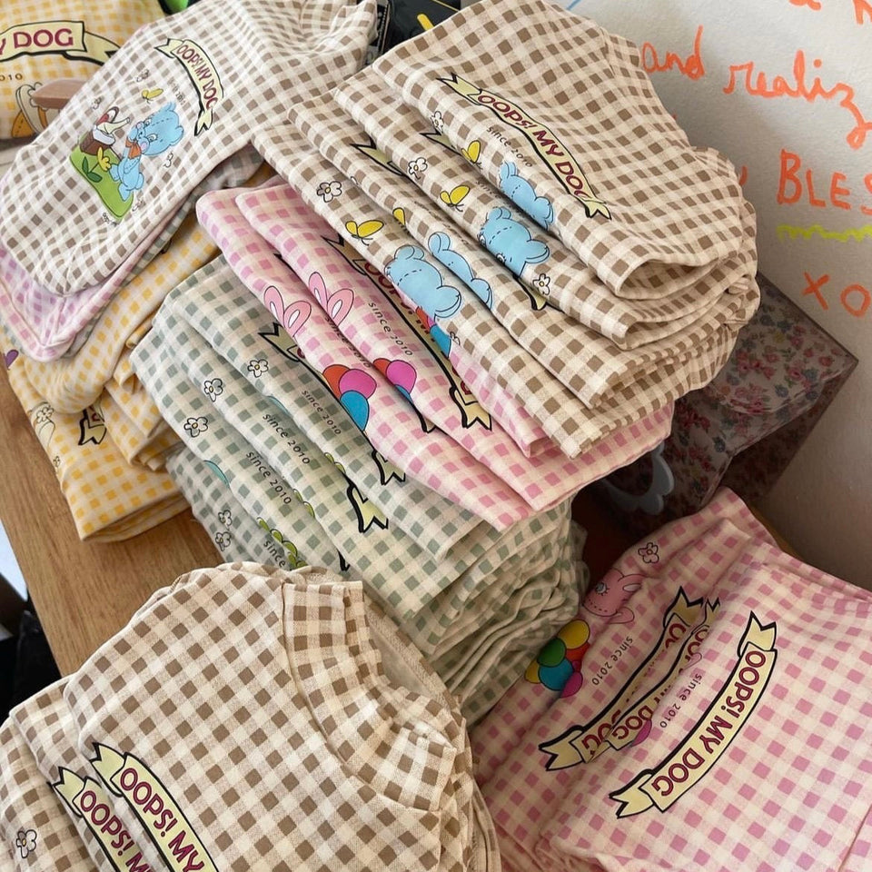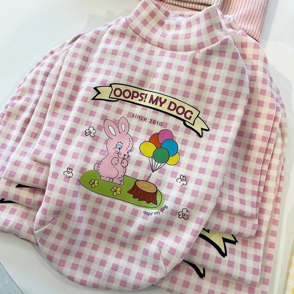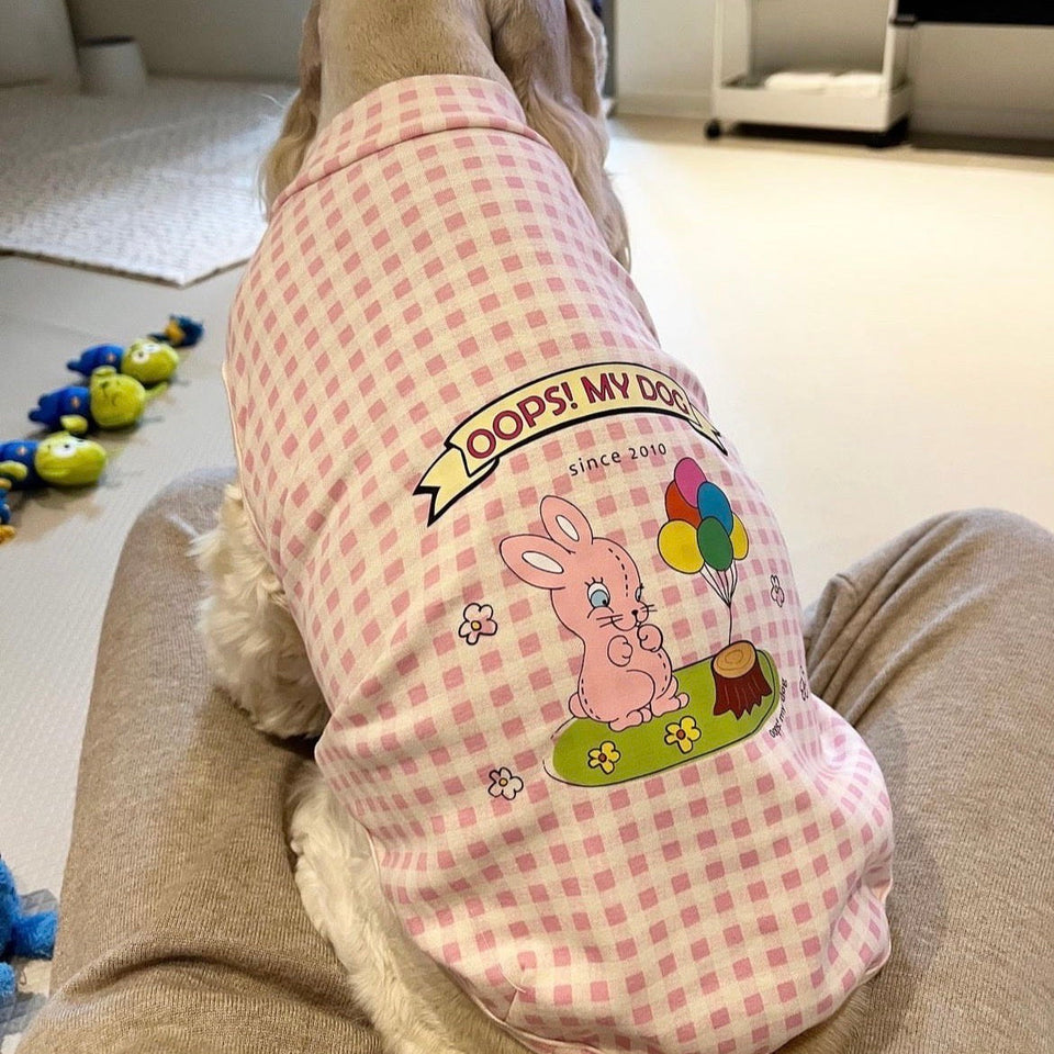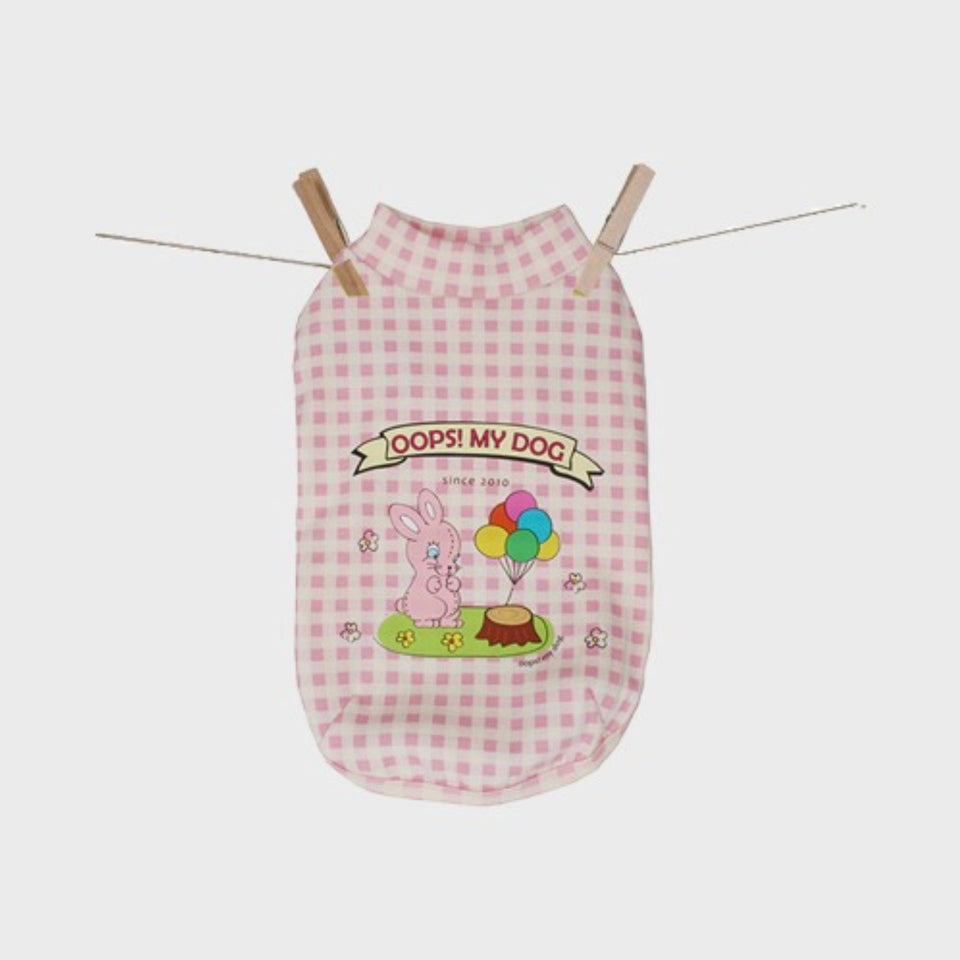 『チェック柄にブランドロゴとバニーのプリントが可愛いオーガニックコットン100%のスリーブレス』