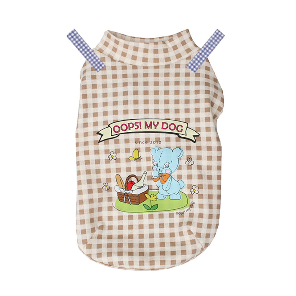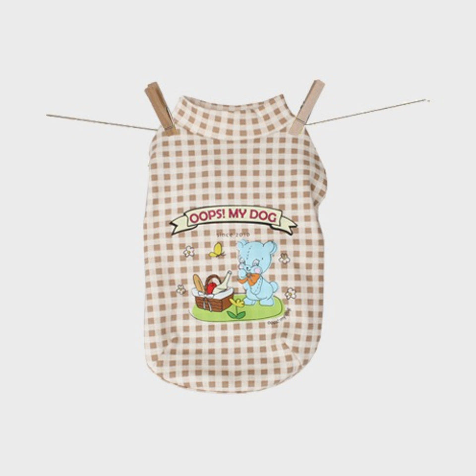 『チェック柄にブランドロゴとテディーのプリントが可愛いオーガニックコットン100%のスリーブレス』