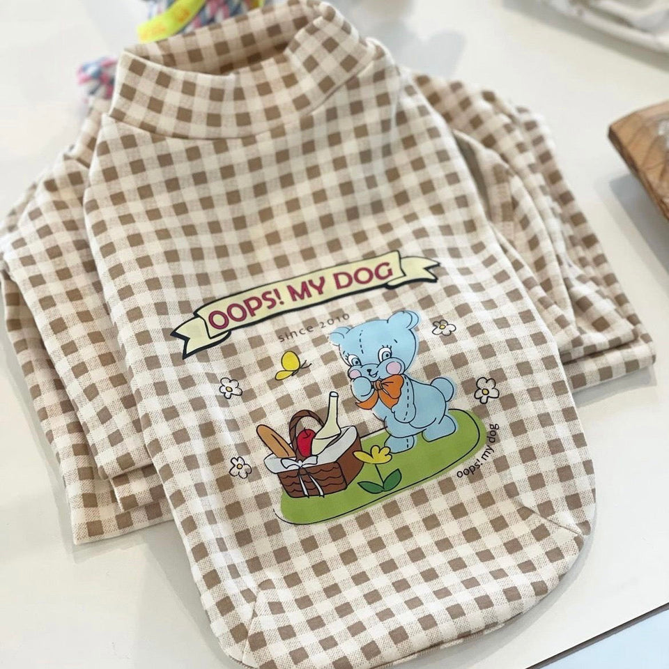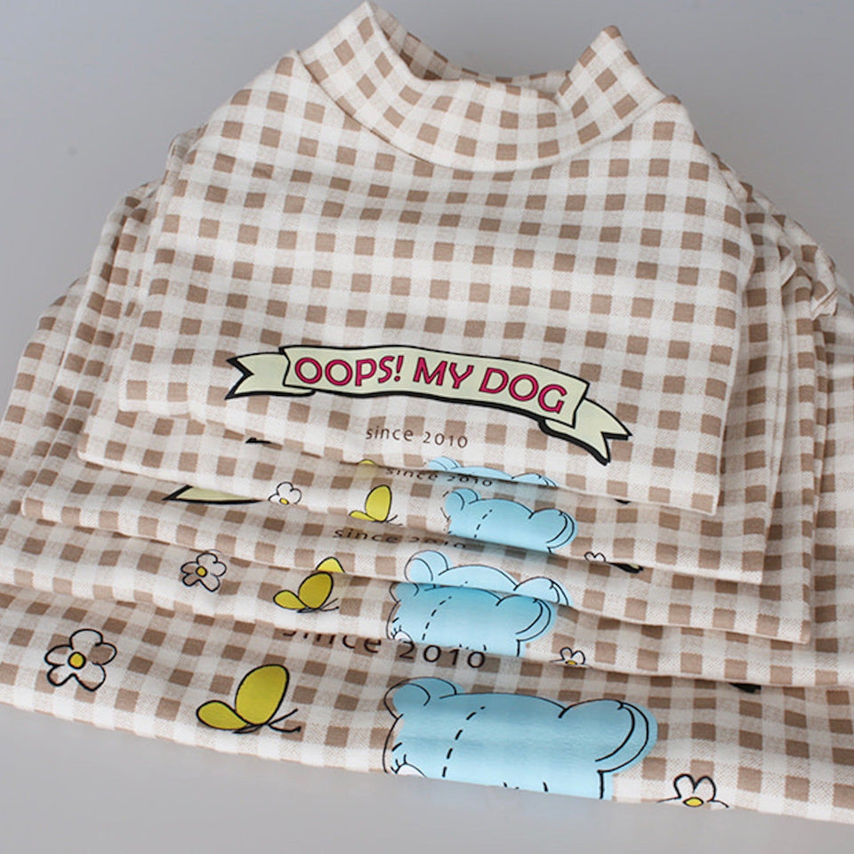 100%オーガニックコットンで作られた愛犬の肌にもとっても優しいチェック柄のモックネックTシャツです!