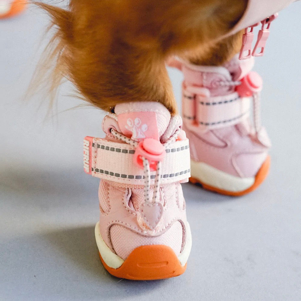 割れたガラスなどの人工物や、雨の日の濡れた地面、暑い日の燃えるアスファルト、凍える寒さの雪の上などからの大切な愛犬を守る特別なプレミアムスニーカー!