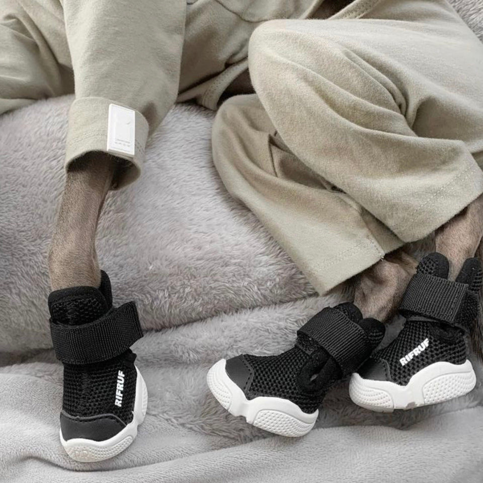 しかし、初めて犬に異物(首輪、ハーネス、衣服など)を付けるのと同様に、RIFRUF®犬用スニーカーを初めて履くときは順応するのに時間がかかります。