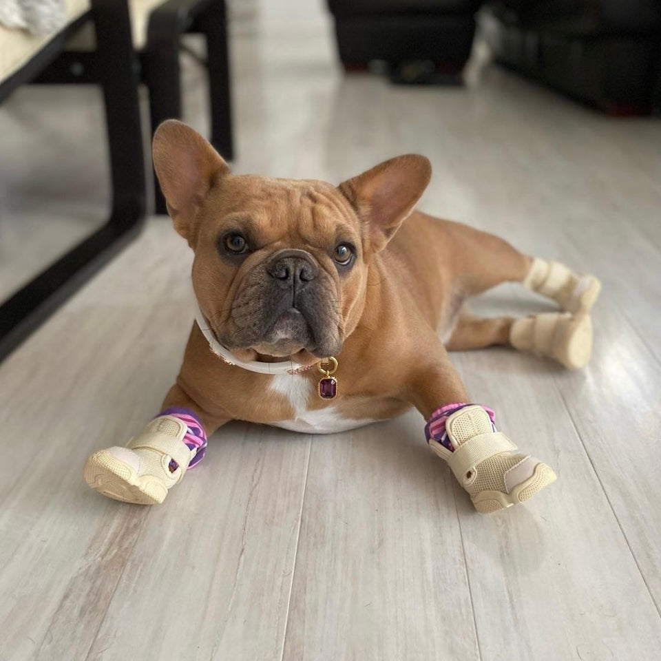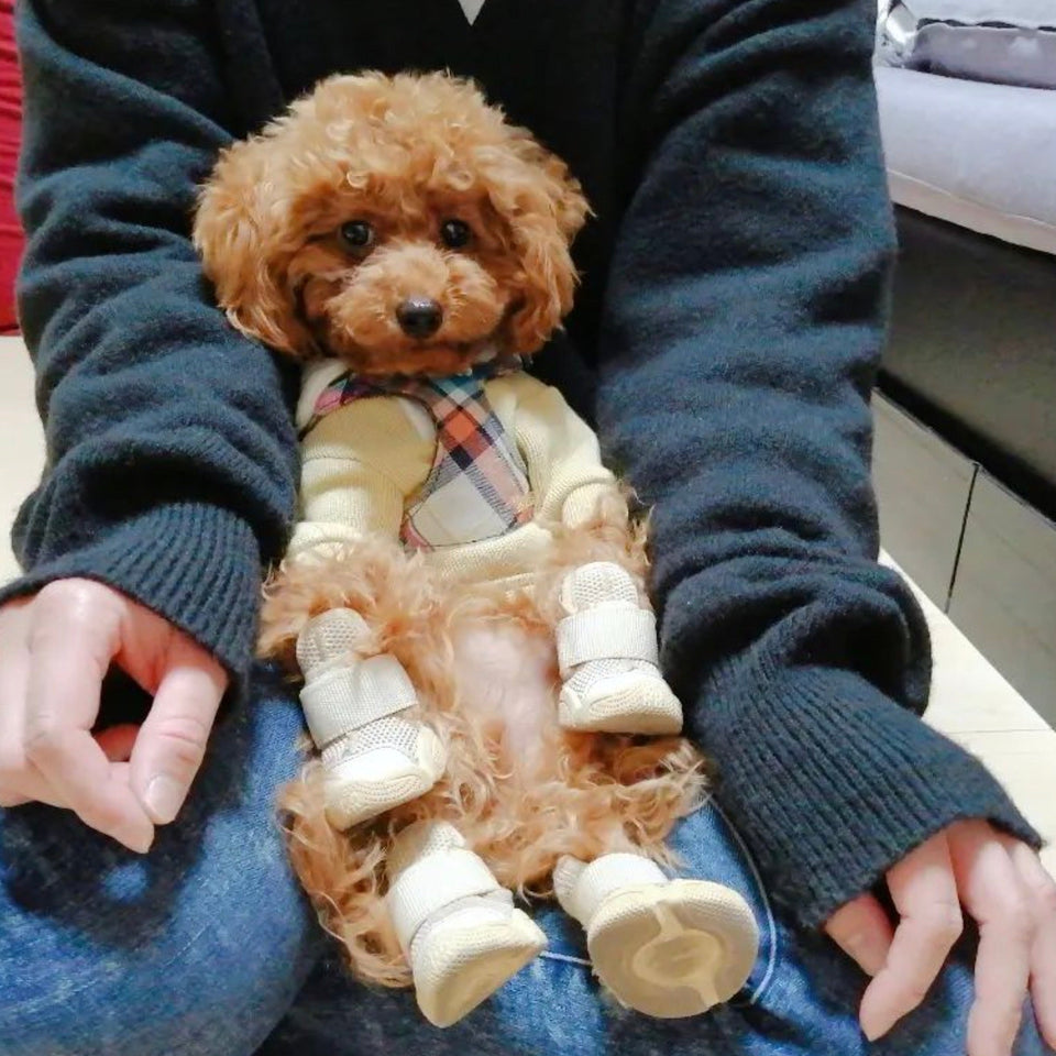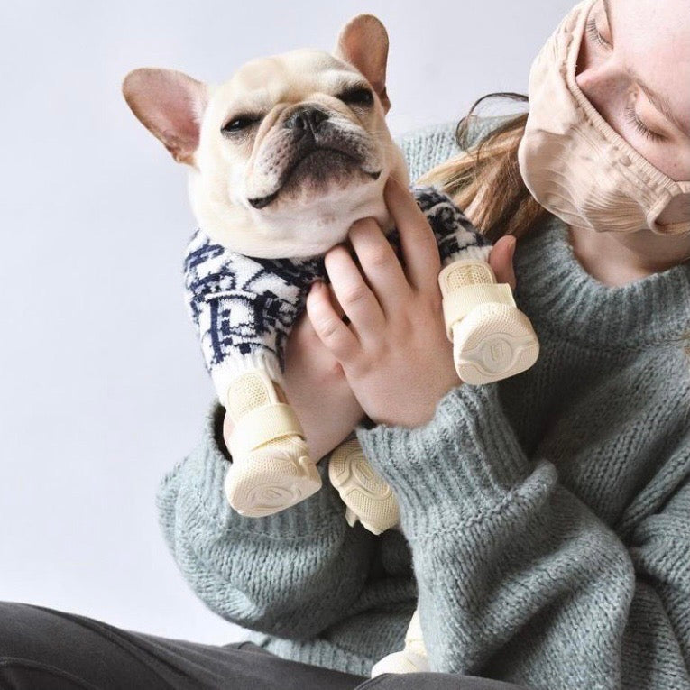 市場でよく見る犬用スニーカーは「犬用」であって、素材も品質も安全性も快適性もデザイン性も「人用」と比べると圧倒的に劣ります。