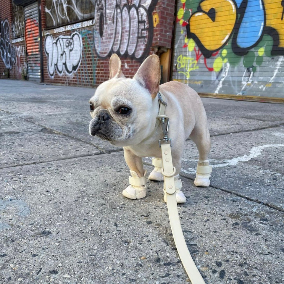 NYの暑い夏、冬の凍える寒さからシーザーの肉球はコンクリートで焼けて炎症を起こしたり、雪で冷たさから切れたり.....そんな肉球を守るために犬靴を探したが期待した通りのものは見つからず、そこで誕生したのがRIFRUFです!