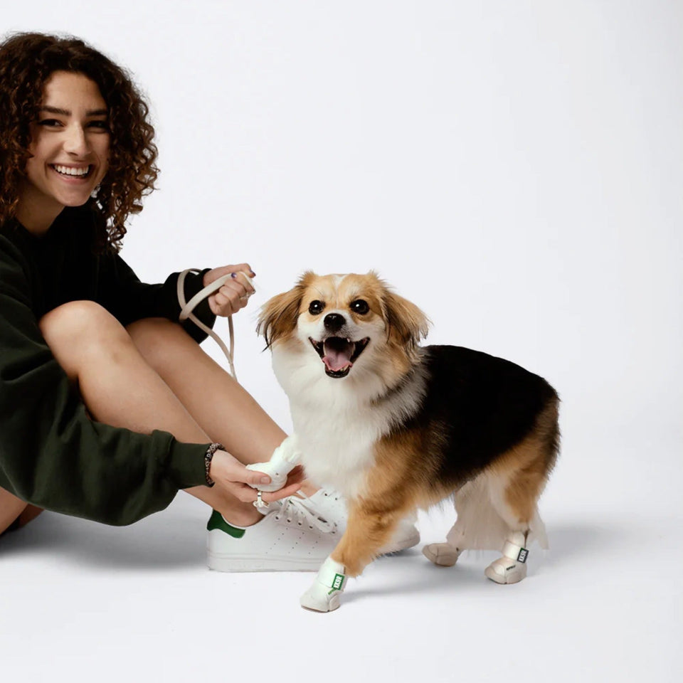 割れたガラスなどの人工物や、雨の日の濡れた地面、暑い日の燃えるアスファルト、凍える寒さの雪の上などからの大切な愛犬を守る特別なプレミアムスニーカー!
