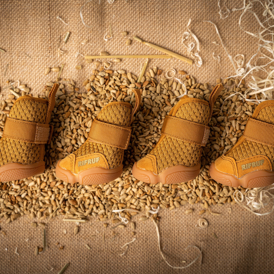 しかし、初めて犬に異物(首輪、ハーネス、衣服など)を付けるのと同様に、RIFRUF®犬用スニーカーを初めて履くときは順応するのに時間がかかります。