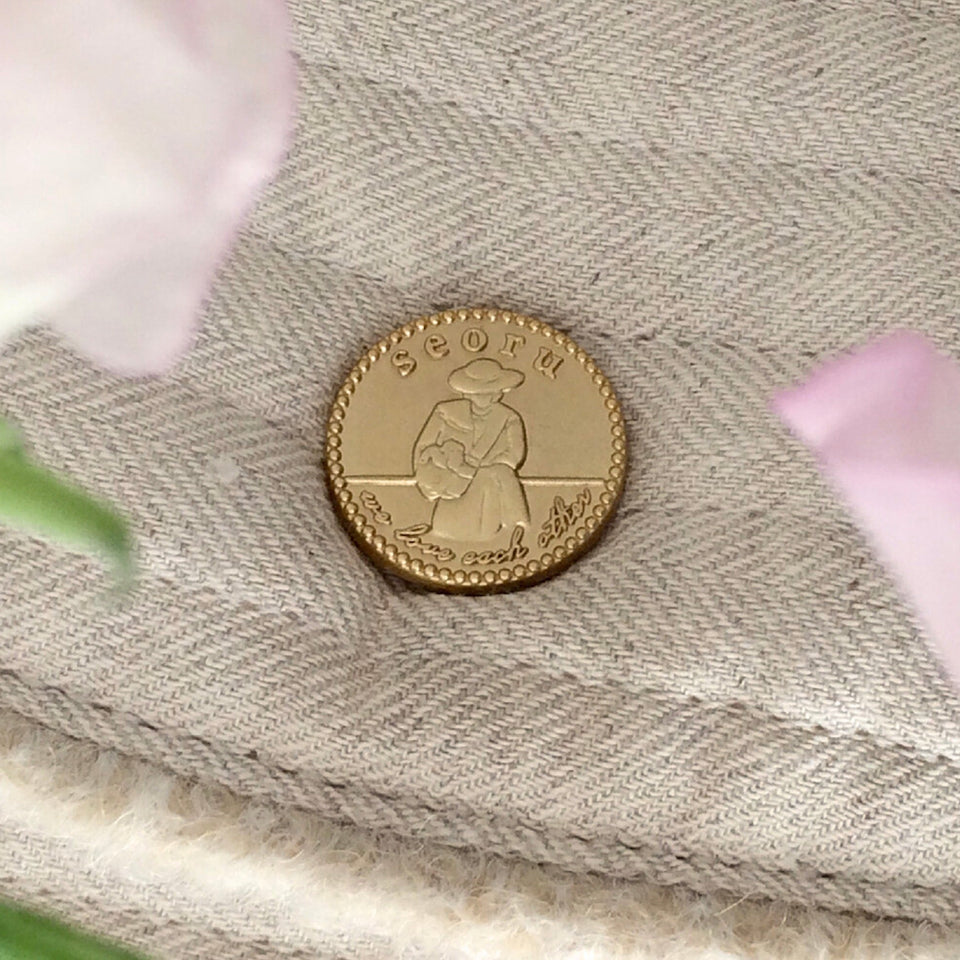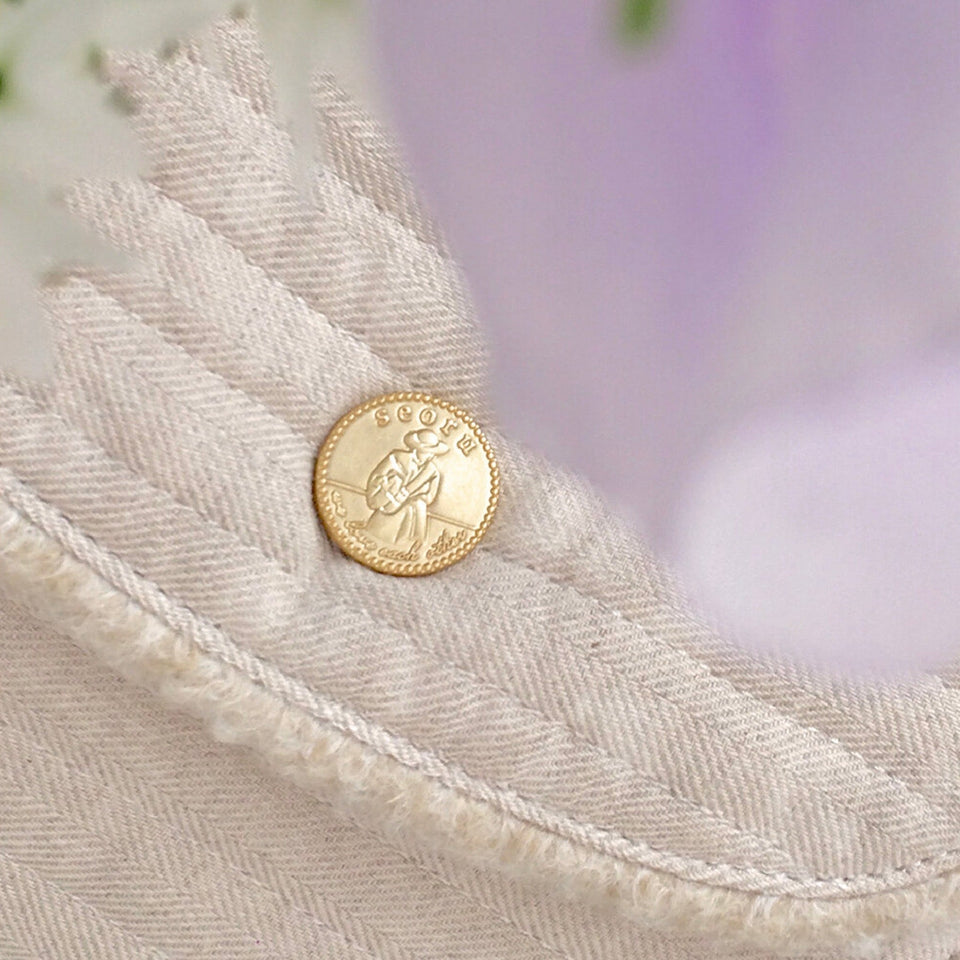 フラップのボタンはオリジナルのゴールドボタンでseoruの世界観を演出しています。