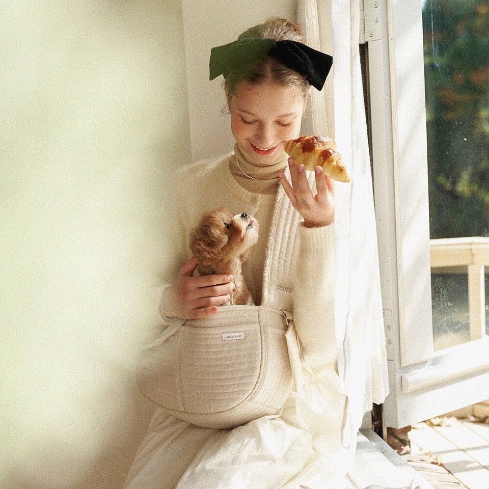 一般的に発売されているスリングバッグは底がないタイプが多いですが、こちらは底に板が入っているので(取り外し可能)ワンちゃんが中に入ったまま、バッグを自立させることが可能。