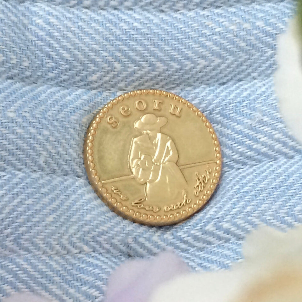 フラップのボタンはオリジナルのゴールドボタンでseoruの世界観を演出しています。
