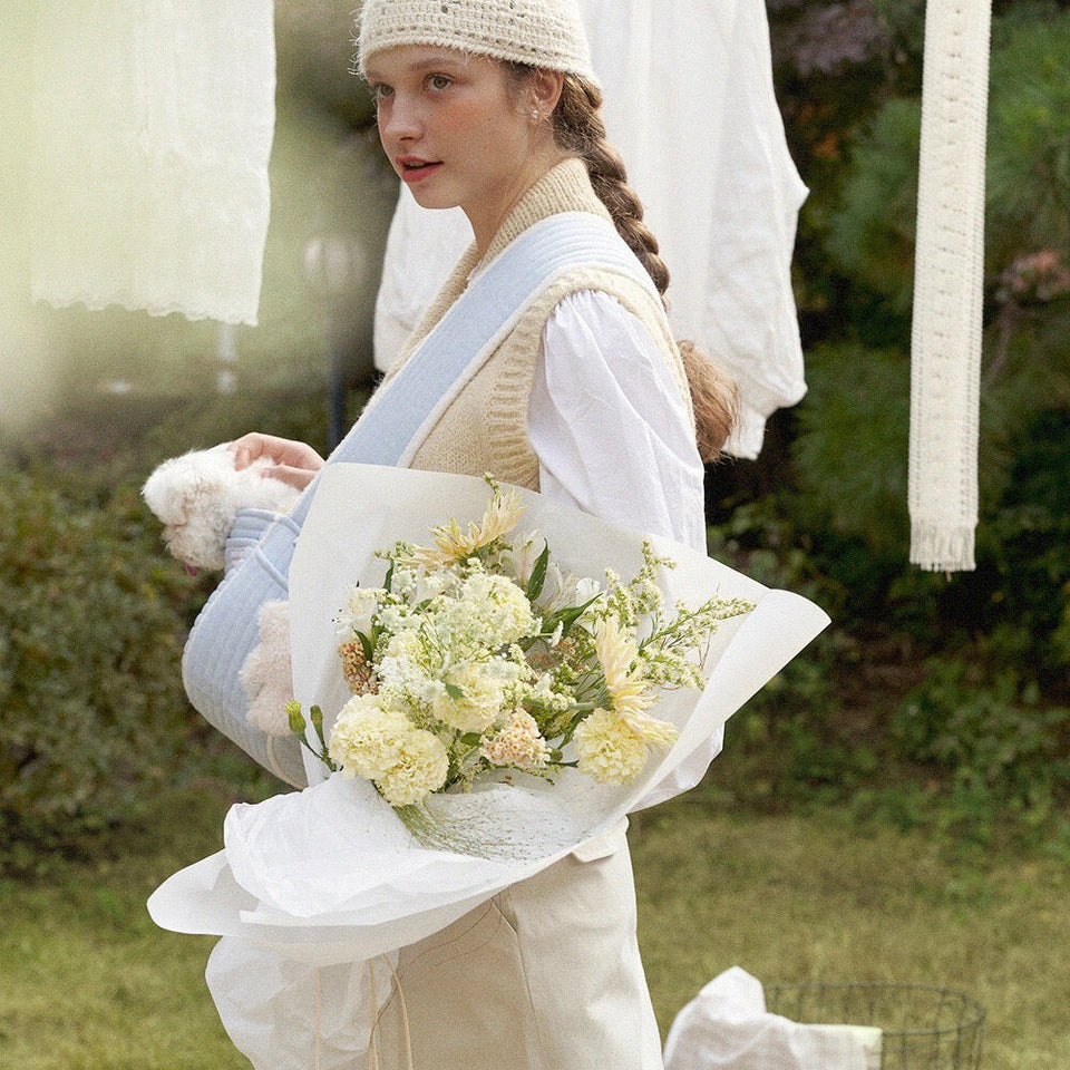 一般的に発売されているスリングバッグは底がないタイプが多いですが、こちらは底に板が入っているので(取り外し可能)ワンちゃんが中に入ったまま、バッグを自立させることが可能。