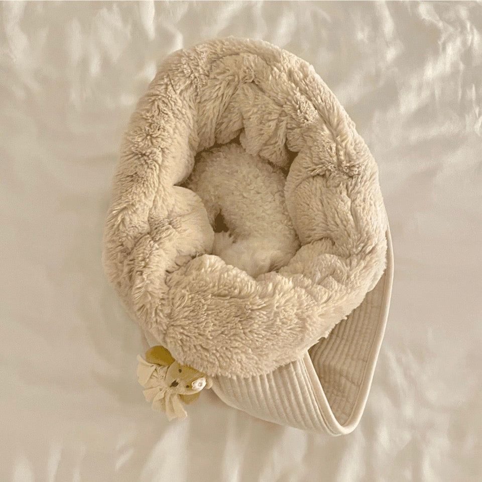 『愛犬を冬の寒さから守る見た目も可愛く暖かなファー巾着♡』