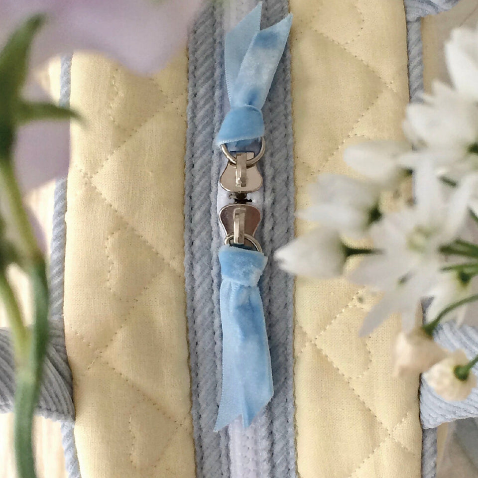ファスナー部分は上品で可愛さのあるベルベットのリボンをプラス!