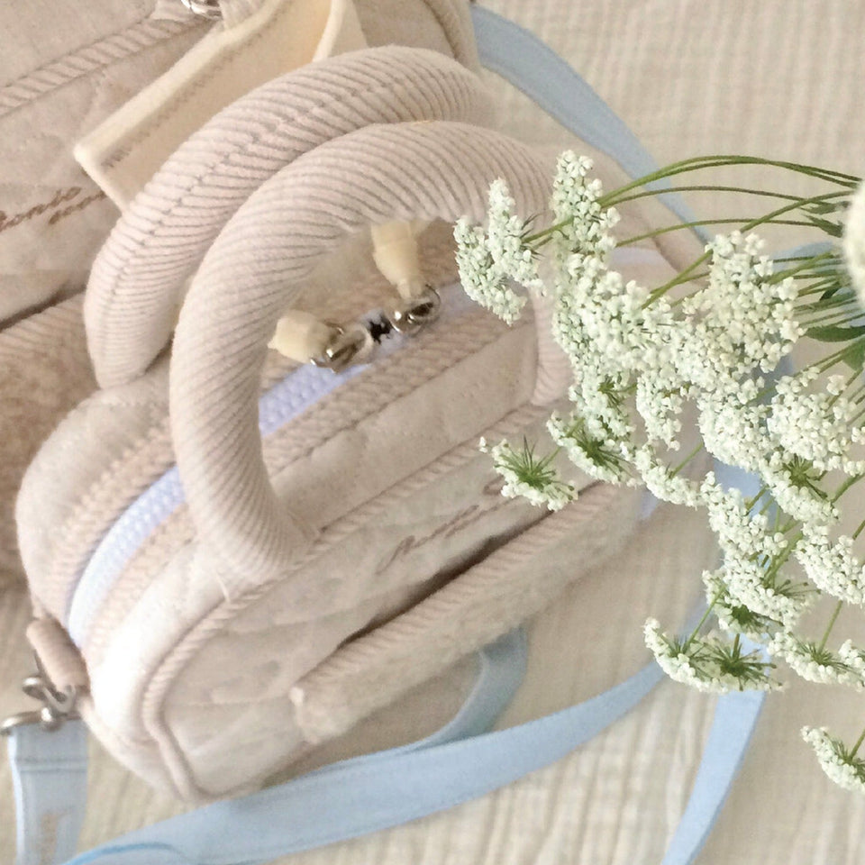 ボディのseoruらしいヴィンデージ調のキルティング生地に今回はハートの模様の生地を使用!さらにワンポイントとなる刺繍も入り、特別感もプラス!
