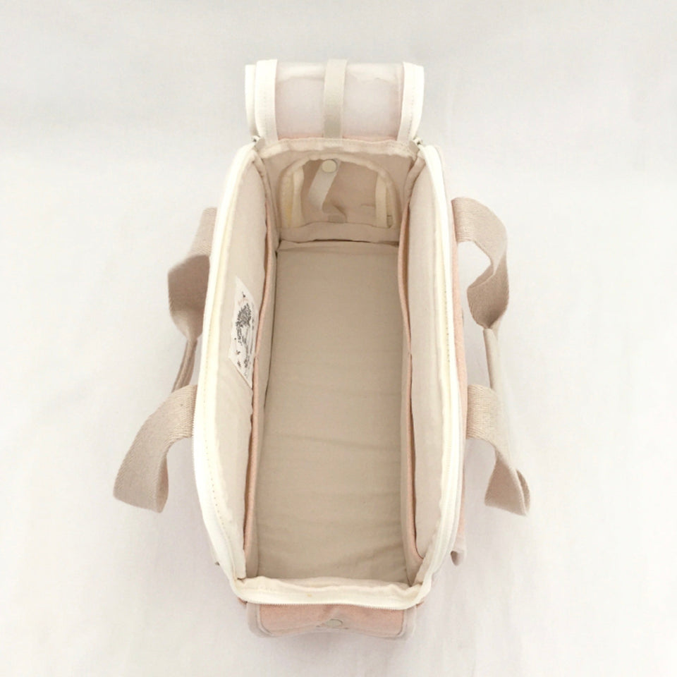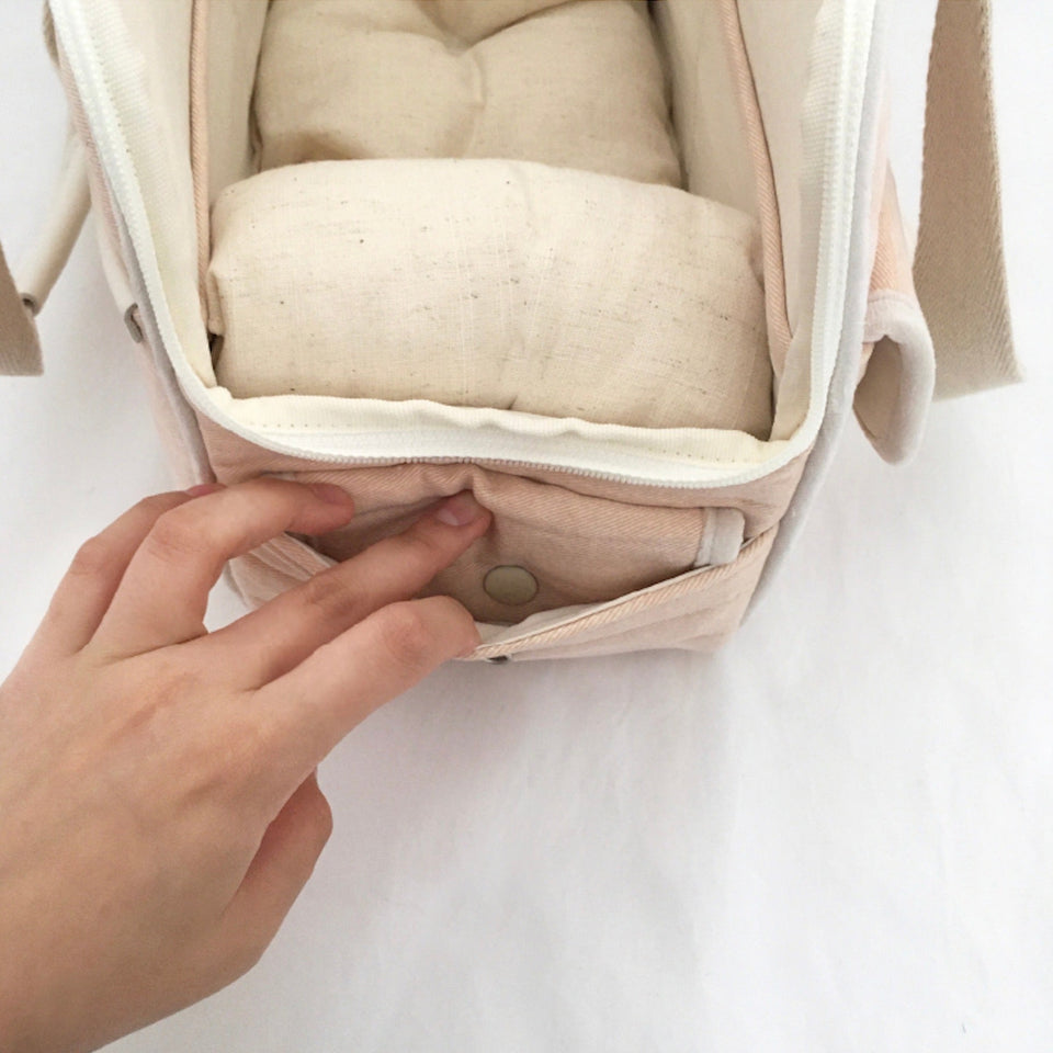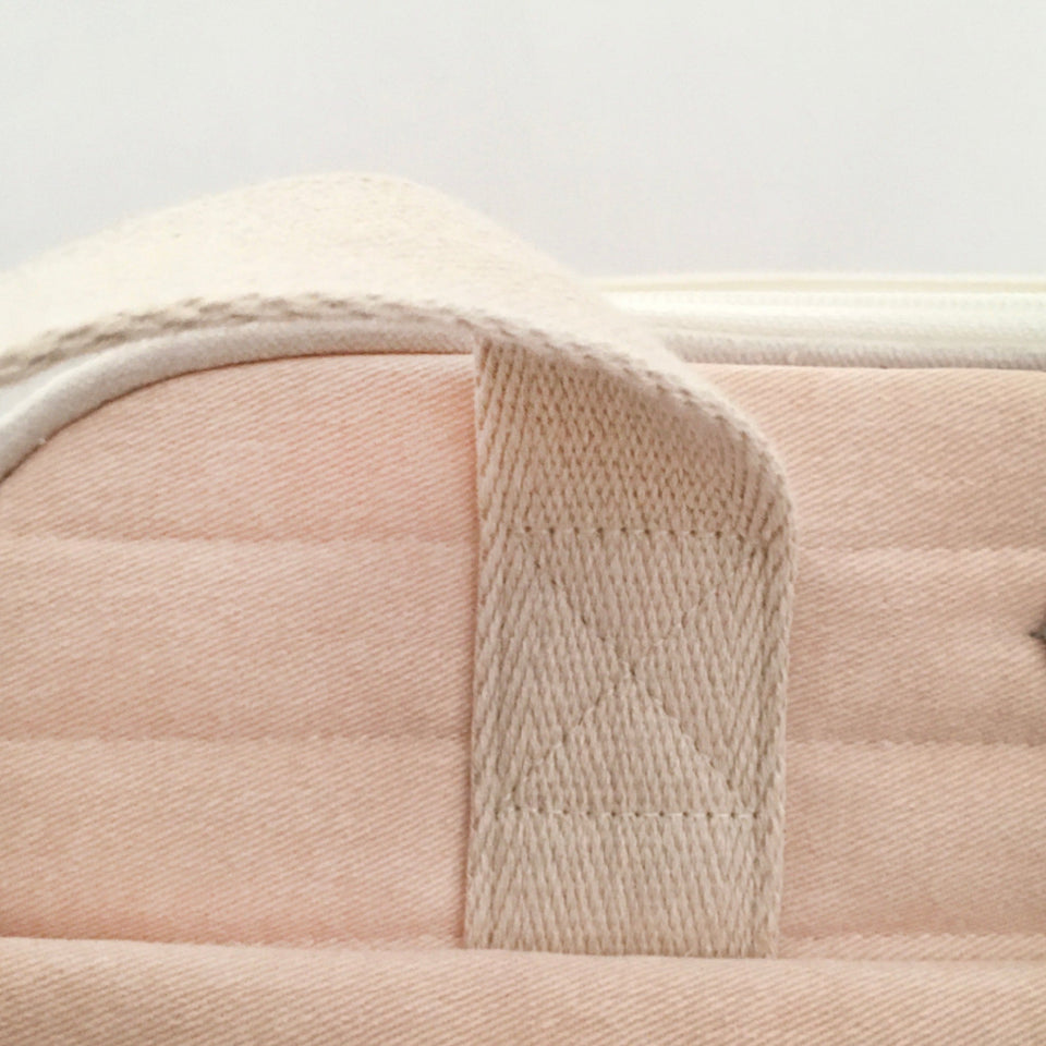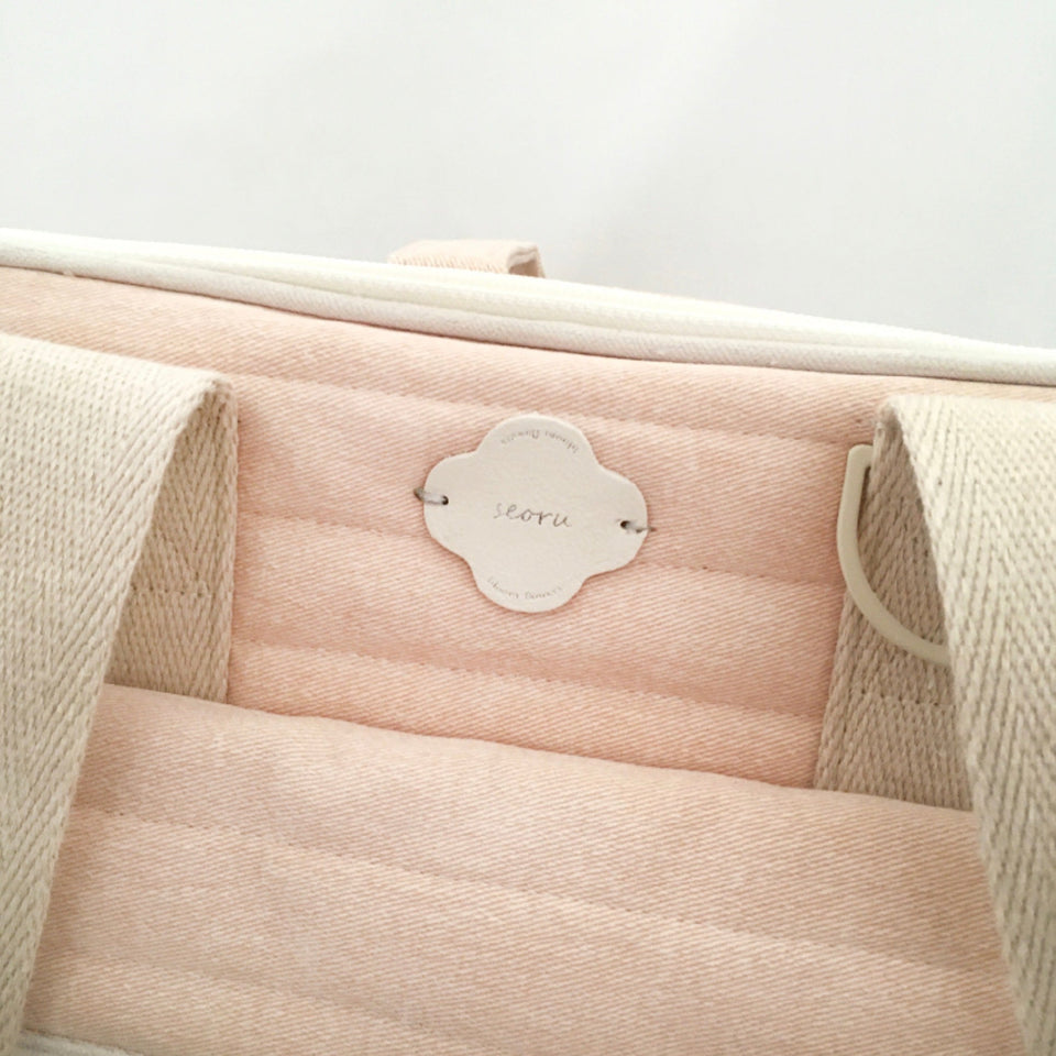 バッグの表地はコットン100%のナッピング加工を施したツイル生地を選び、触れた時のやさしい肌触りを実現。