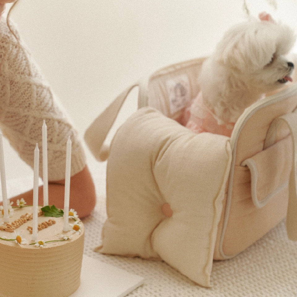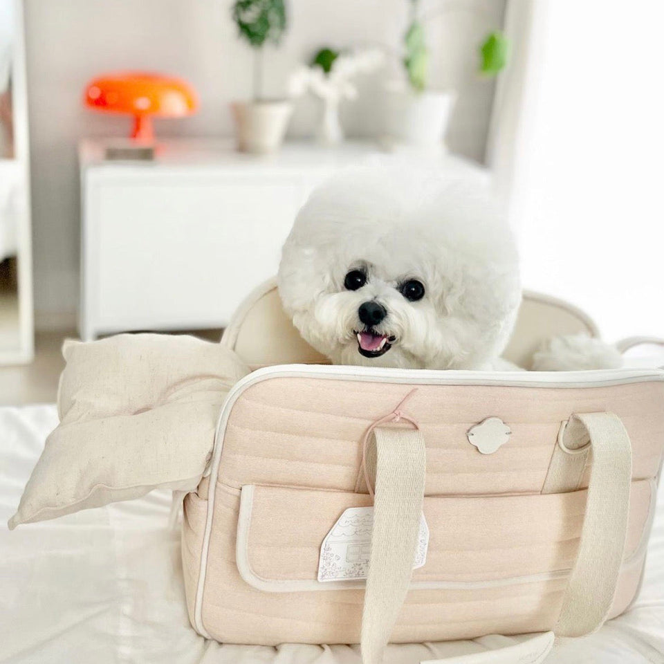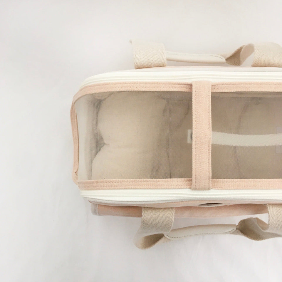 前作から新たにリニューアルされたballon bagの特徴は、度重なるパターン修正により、バッグの中に入るわんちゃんたちが安定感を感じながら静かに過ごせることを最優先に考え、つくられました。