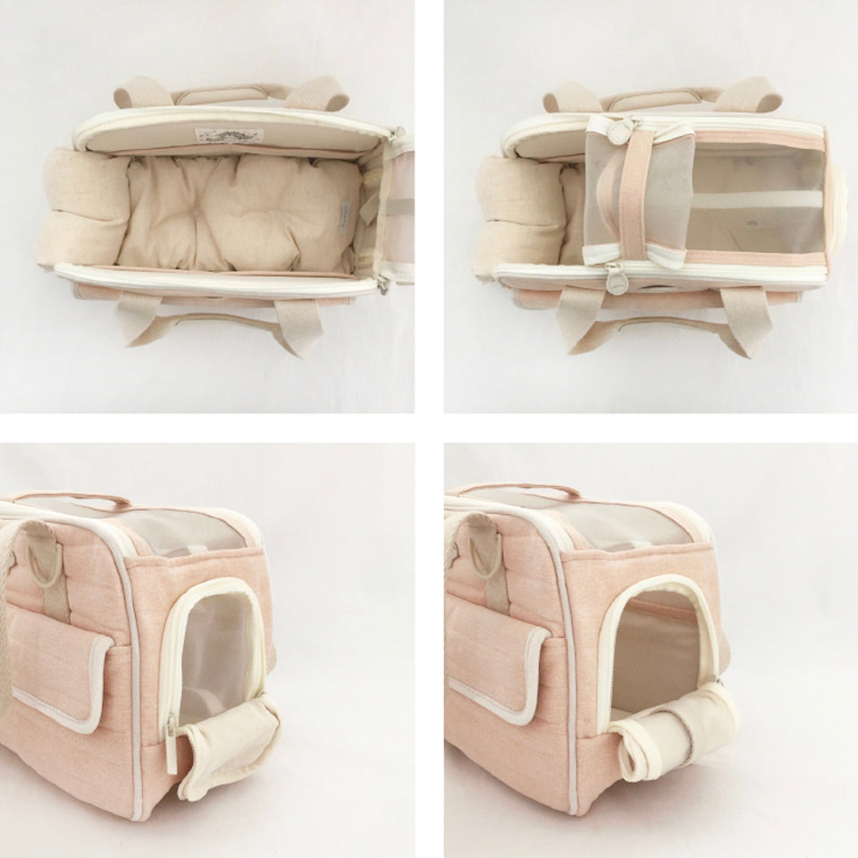 クッションは鞄を完全に密閉する仕様、オープンにしてわんちゃんに顎の背をさせリラックスさせる仕様で使い分けることができます!