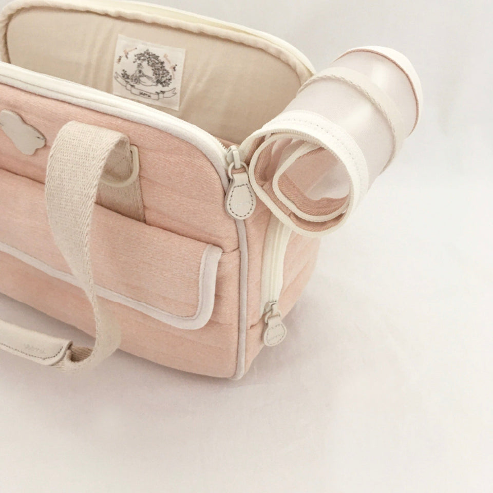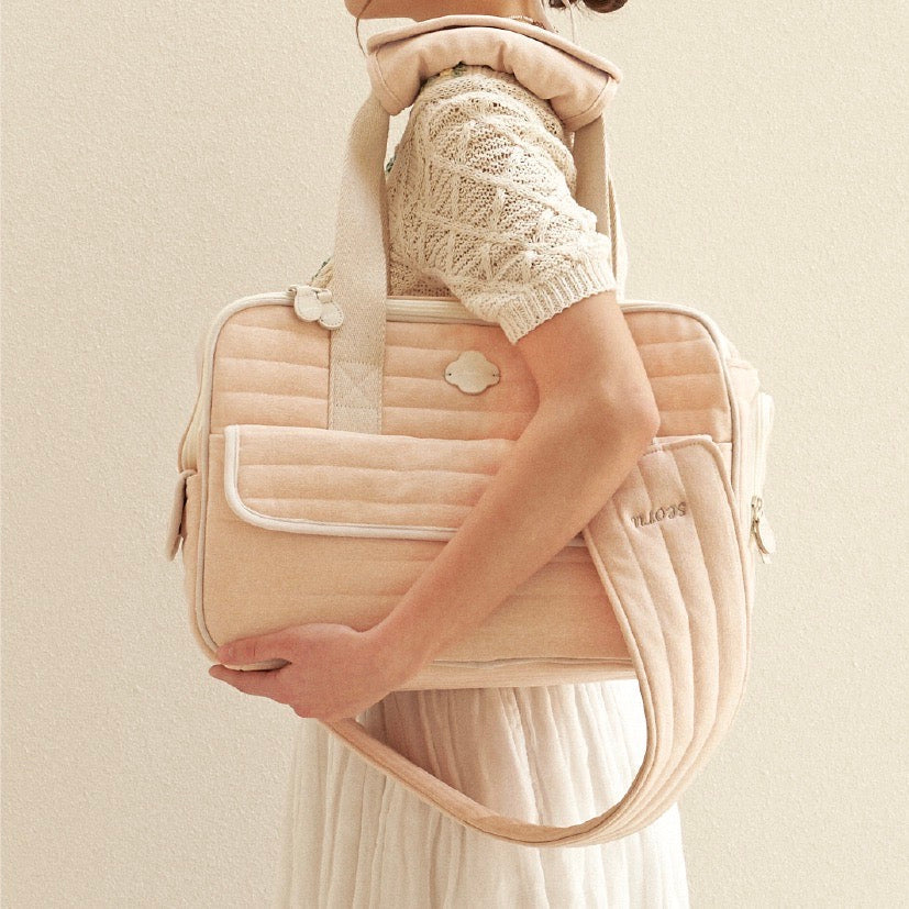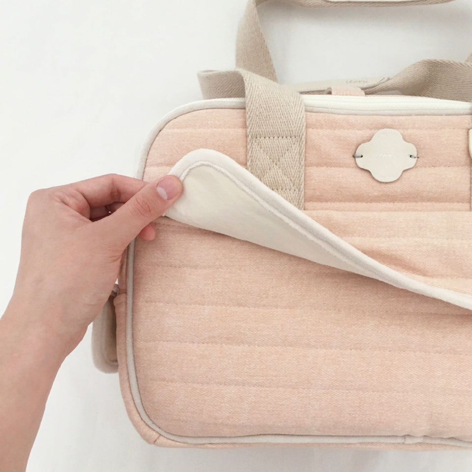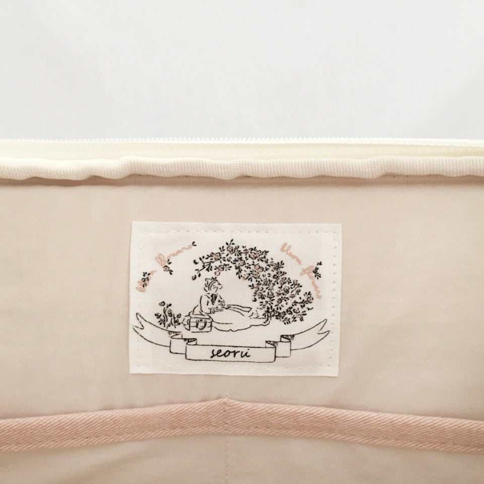バッグの表地はコットン100%のナッピング加工を施したツイル生地を選び、触れた時のやさしい肌触りを実現。