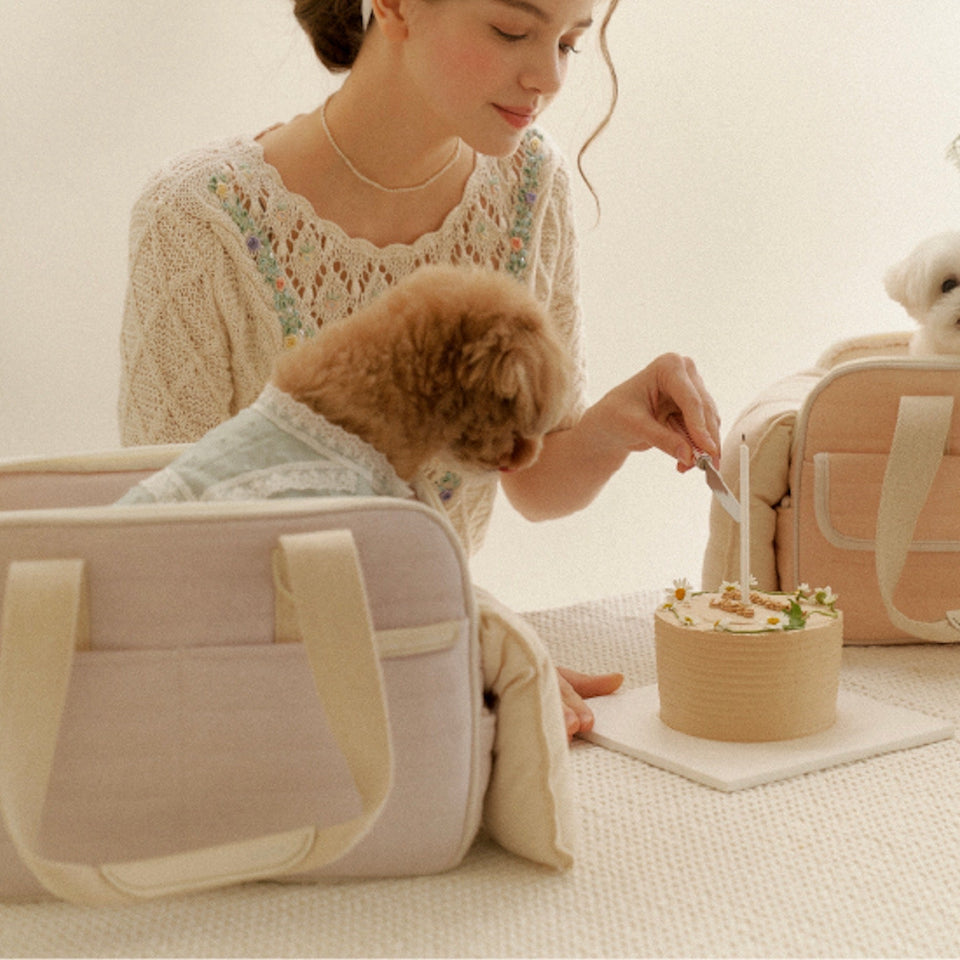 前作から新たにリニューアルされたballon bagの特徴は、度重なるパターン修正により、バッグの中に入るわんちゃんたちが安定感を感じながら静かに過ごせることを最優先に考え、つくられました。