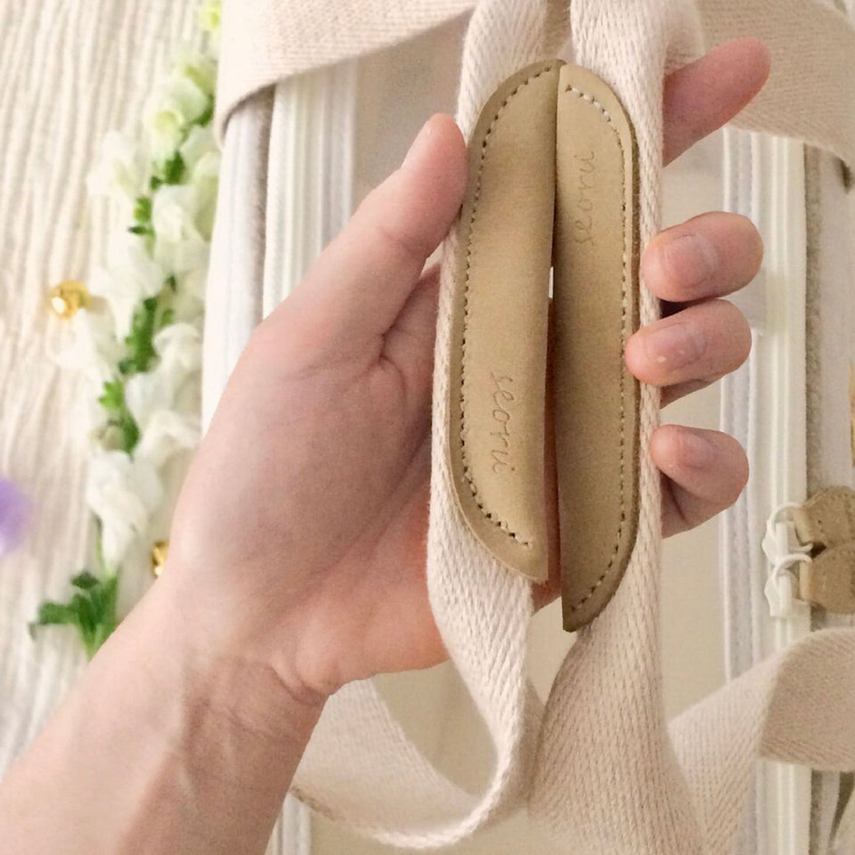 持ち手は柔らかいが手に馴染むよう考慮し、ハンドルストラップはウェビングの中でも最も高級な品質のものを使用しました。