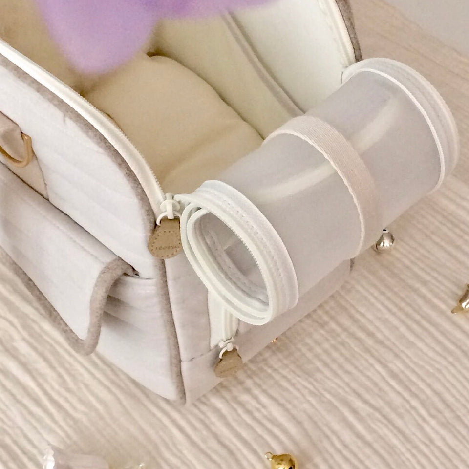 抜群の収納力!お出かけの際はオーナー様が別のbagをもたなくて良いようにポケットをたくさんつけました!