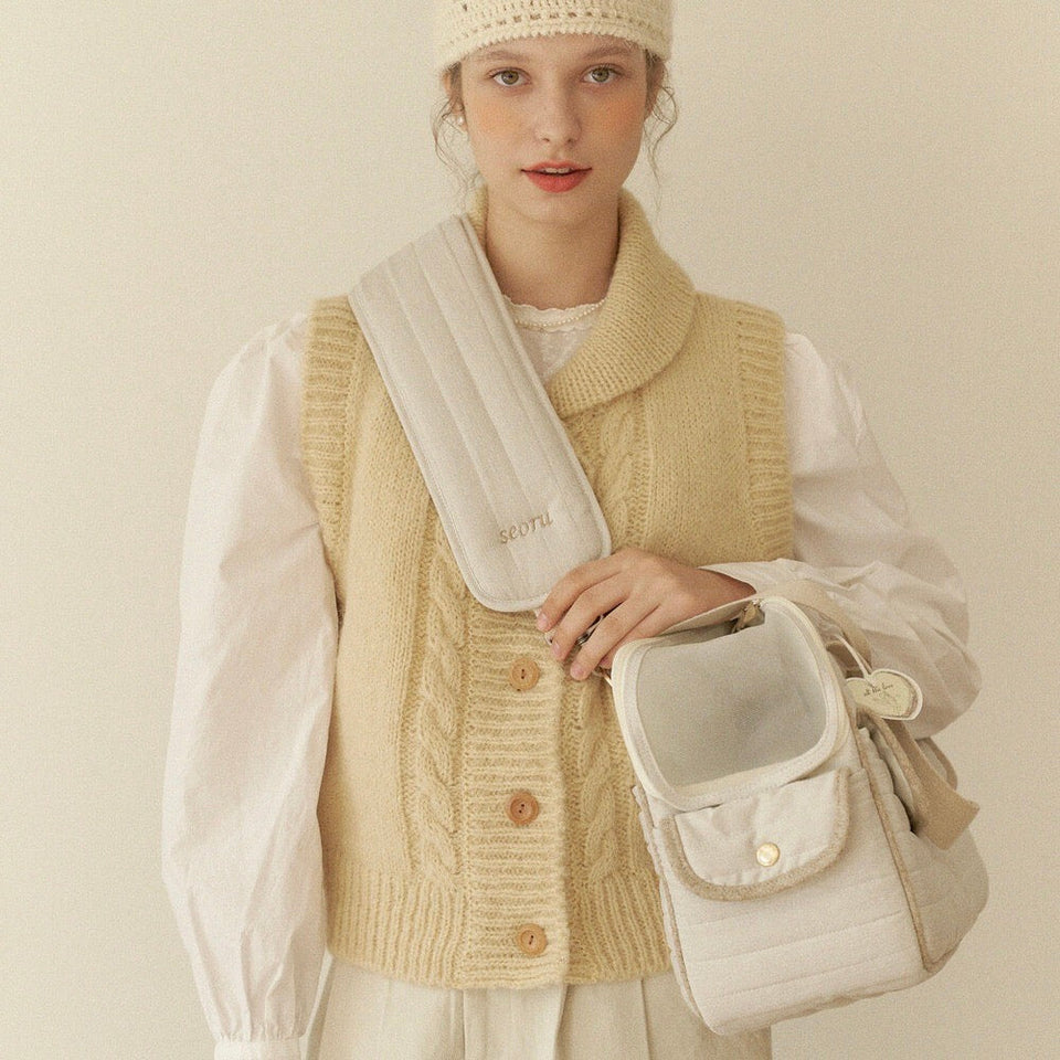 オーナーの肩の負担がなくなるようにもともと軽量で作られていますが、さらにハンドストラップ部分につけることのできるクロスストラップもセットになっているので、より便利!