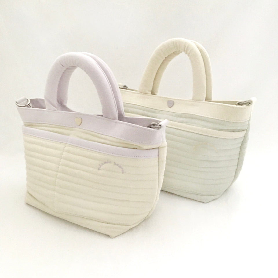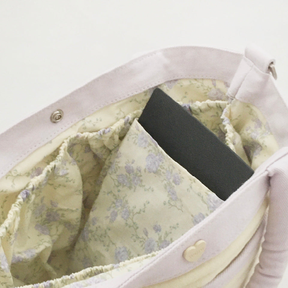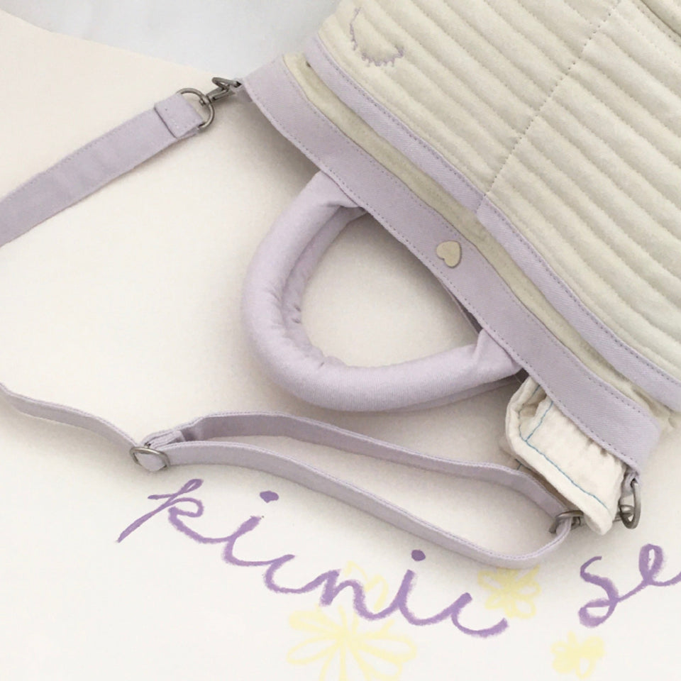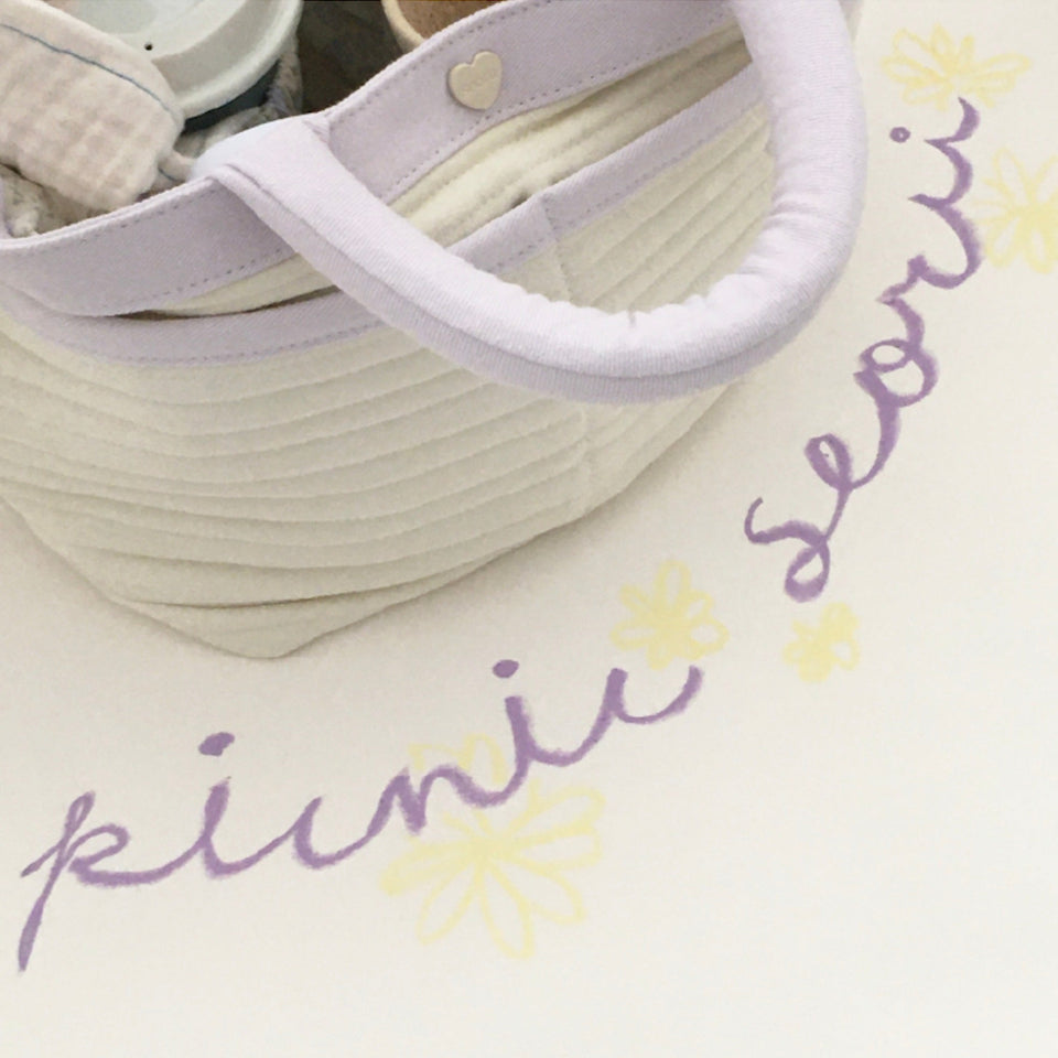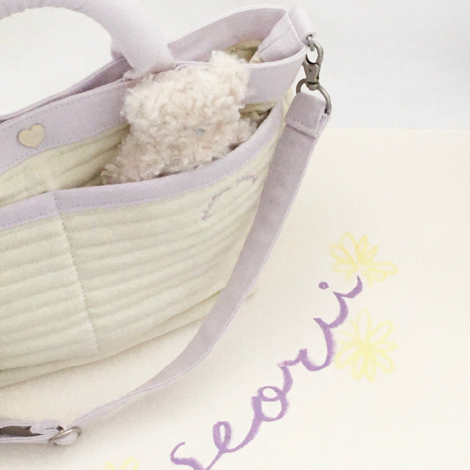 内側はseoruらしい小花柄の生地を用いてスリング同様、底板も外せるので洗濯も楽チンで、さらに底が安定しているのでたくさんの荷物を入れても弛まず感じる重みも軽減した上に見た目もスッキリ!