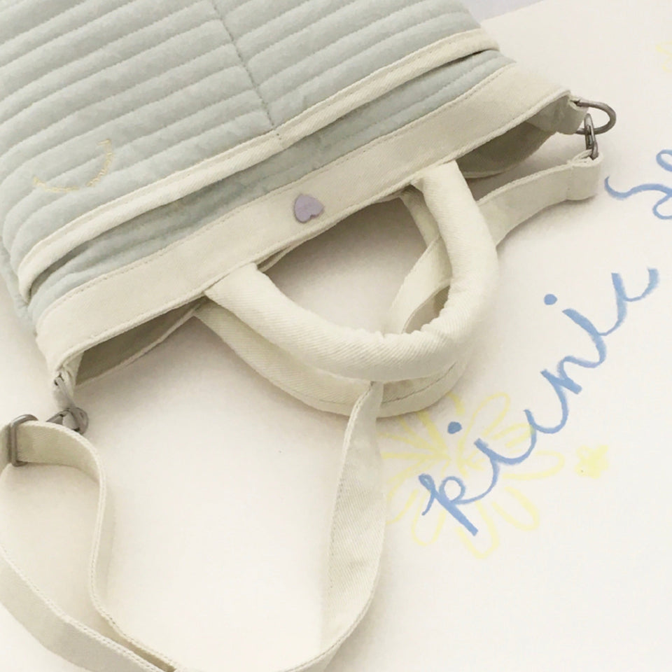 コットン100%のキャンバス生地に色鮮やかな特殊なキャンバス生地を組み合わせたseoruらしいデザインのお散歩バッグ!