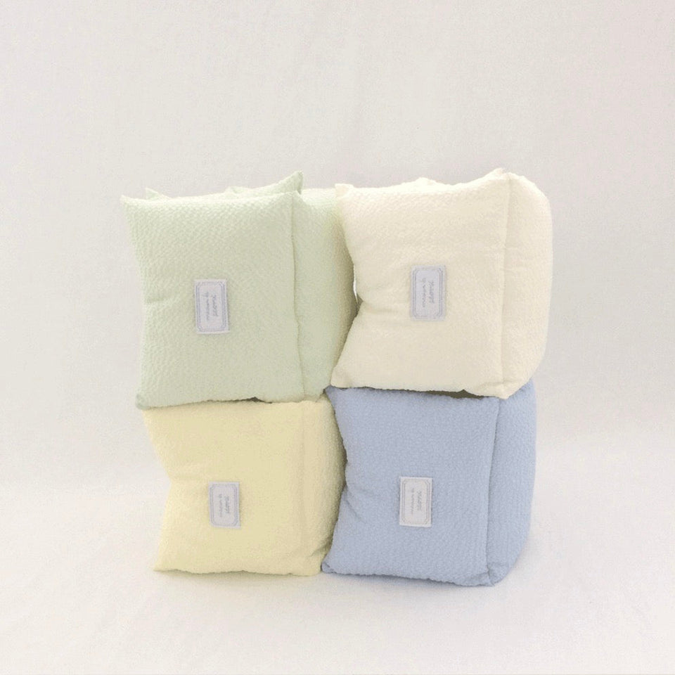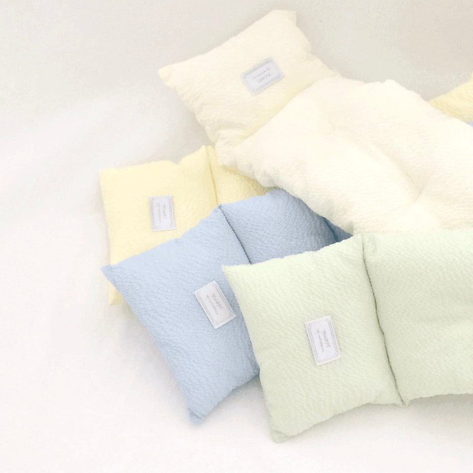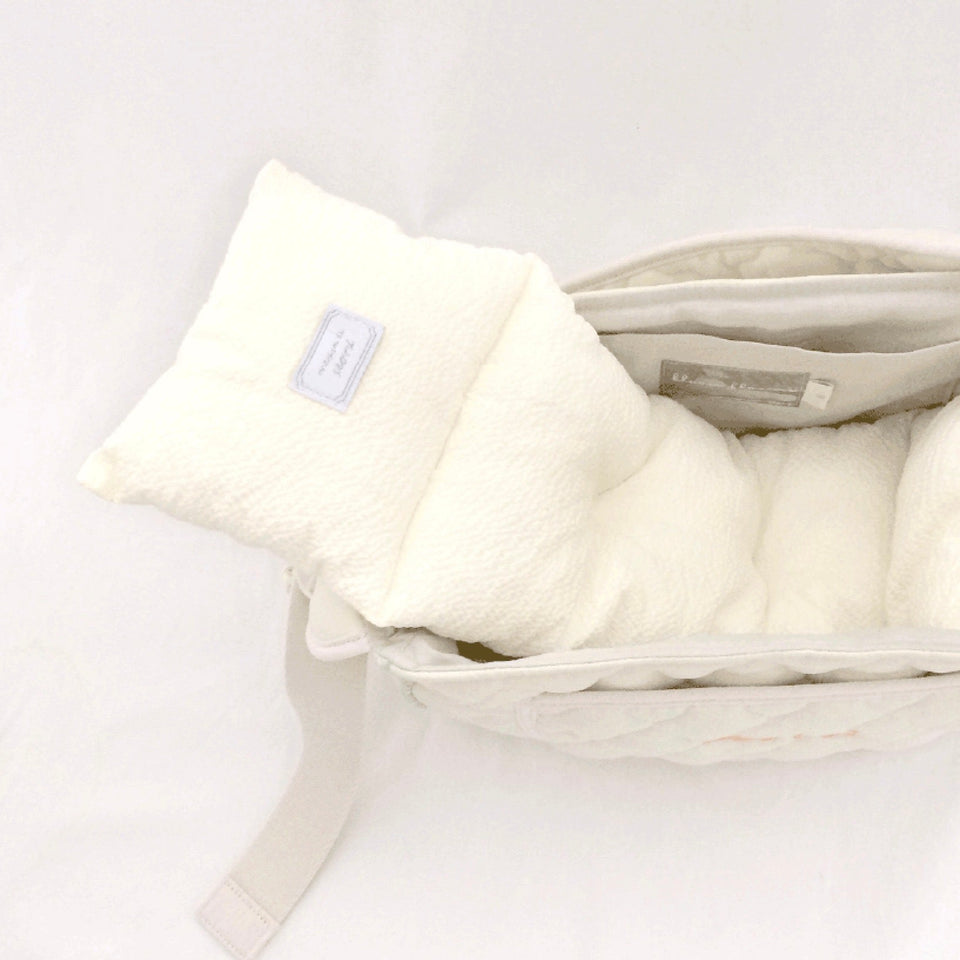 スリングバックの中の愛犬たちにふわふわと安らぎを加えてくれるシアサッカークッションです。