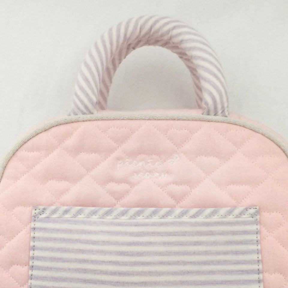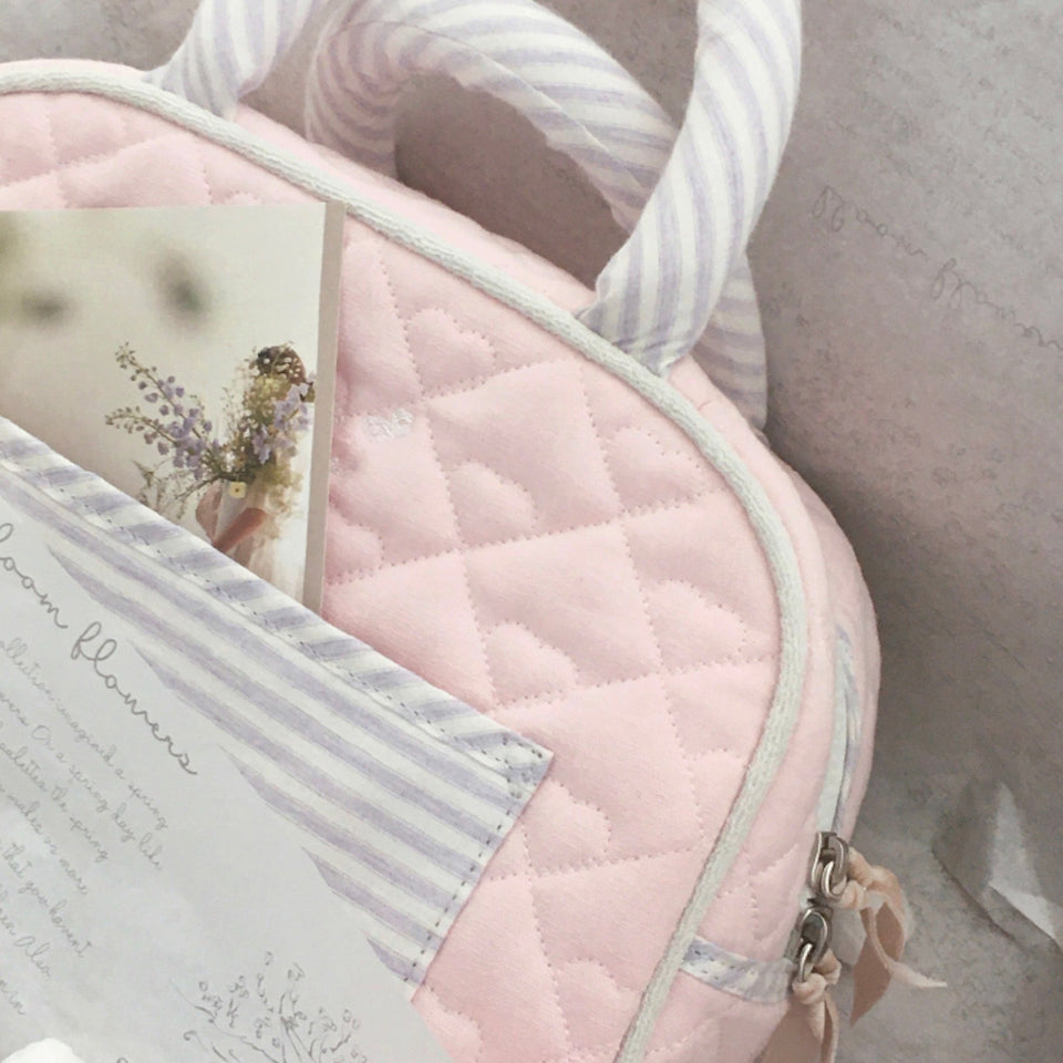 ボディのseoruらしいヴィンデージ調のキルティング生地に今回はハートの模様の生地を使用!さらにワンポイントとなる刺繍も入り、特別感もプラス!