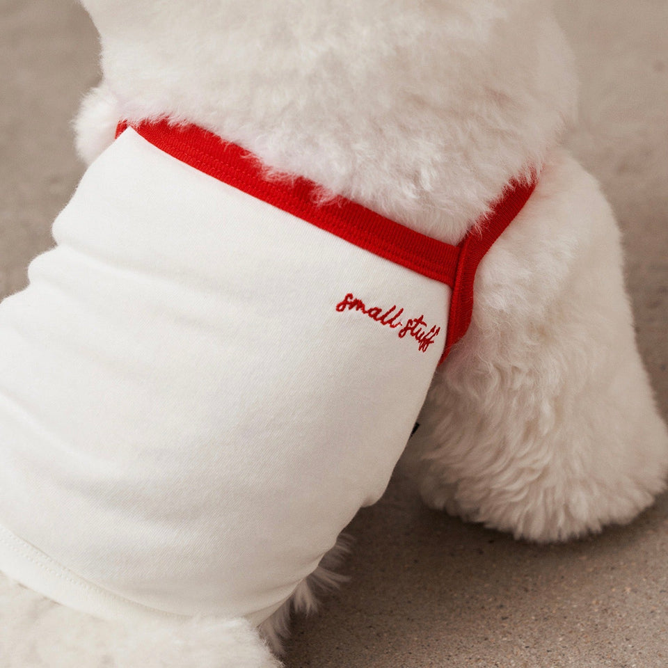 洗練されたクリーンで上品なライフスタイルが叶うブランド"small stuff"のAIRY LOGO SLEEVELESSです。
