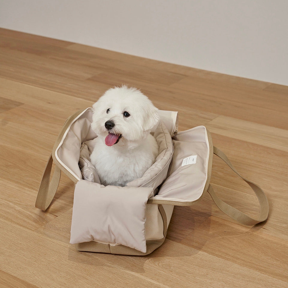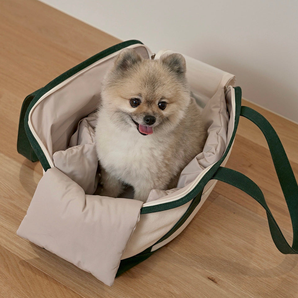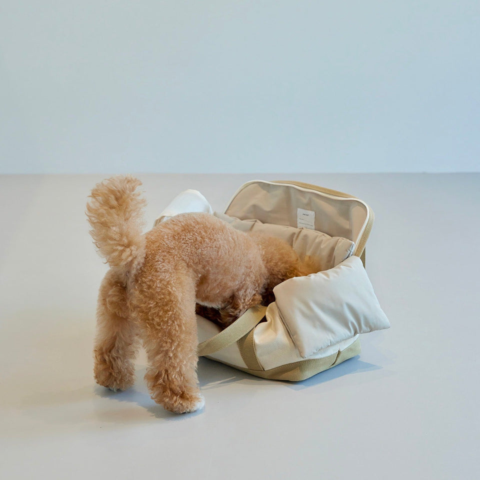キャリーバッグの内部サイズに合わせて製作されたクッション(別売)は顎のせもできるようになり、快適さと居心地の良さを提供してくれます!