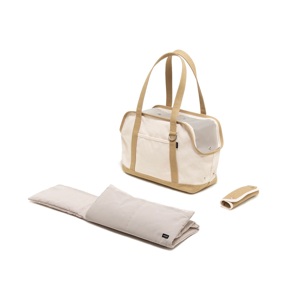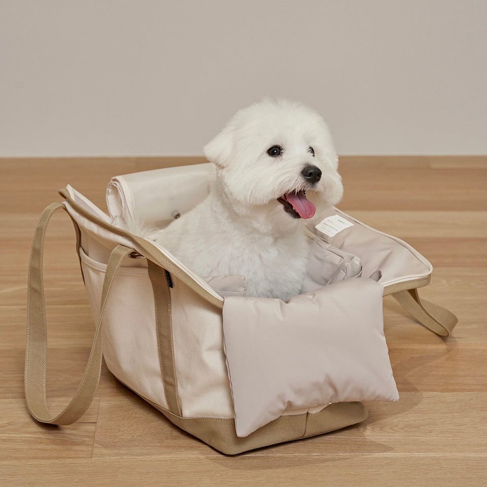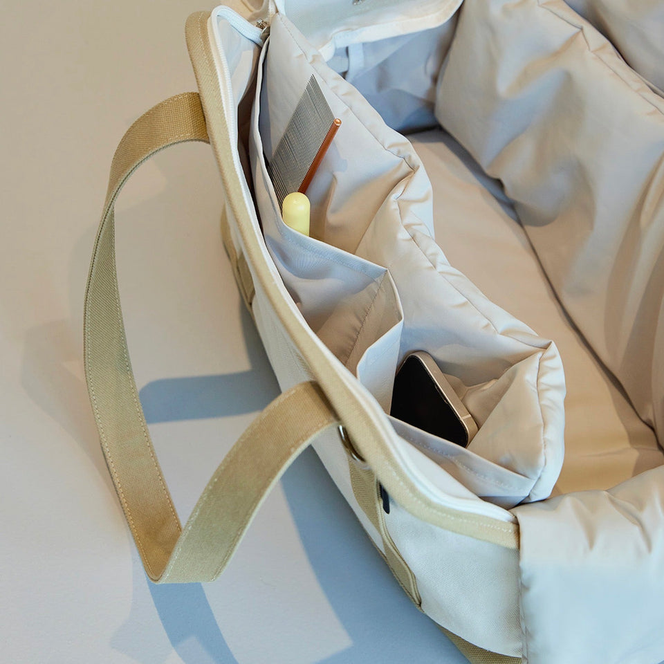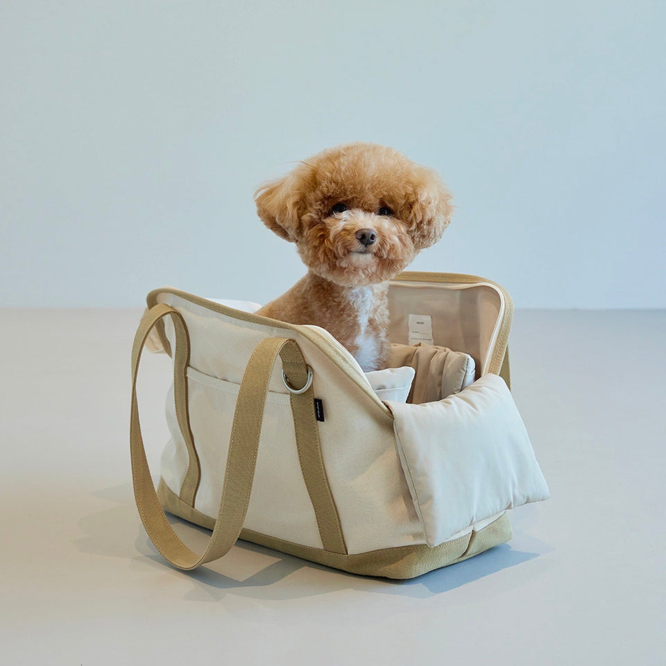 キャリーバッグの内部サイズに合わせて製作されたクッション(別売)は顎のせもできるようになり、快適さと居心地の良さを提供してくれます!