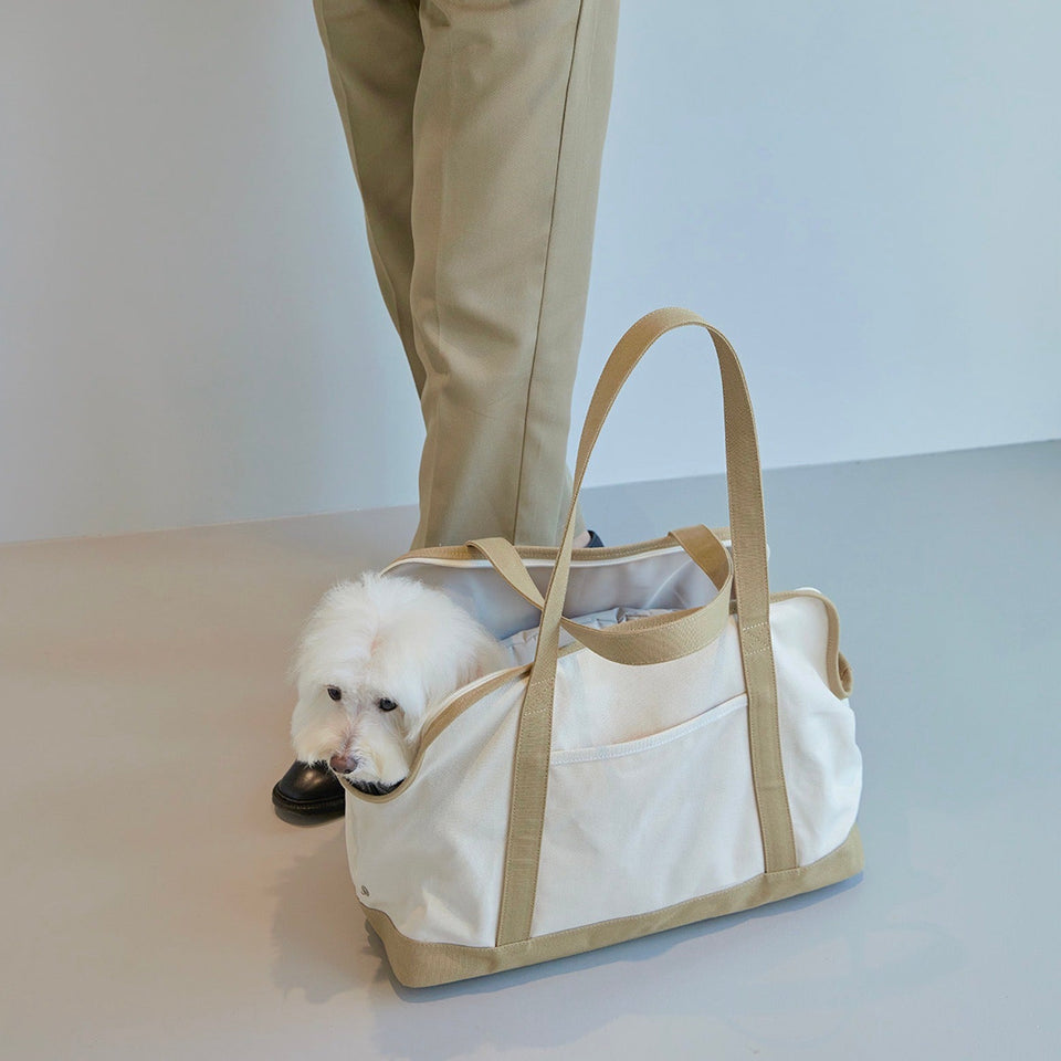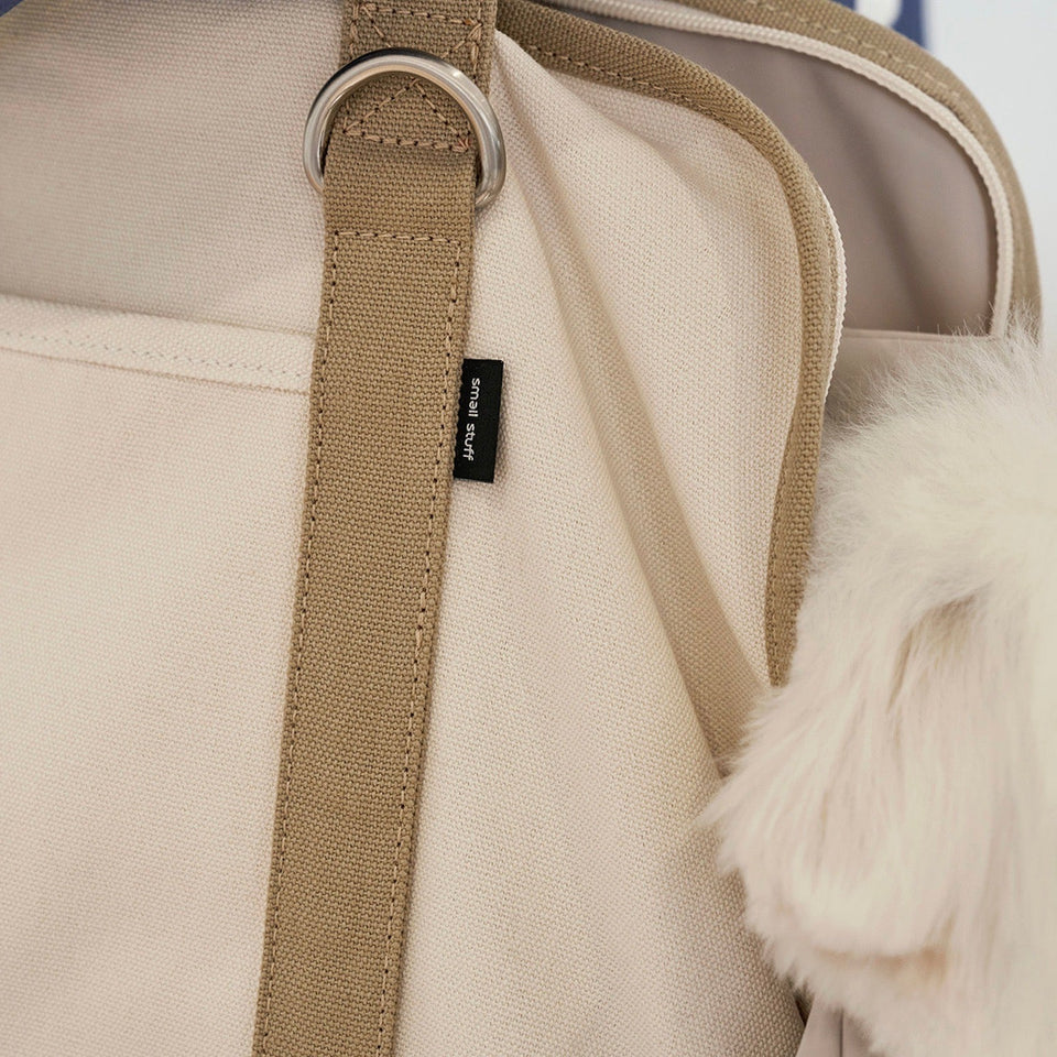 洗練されたクリーンで上品なライフスタイルが叶うブランド"small stuff"のキャンバスキャリーバッグです。