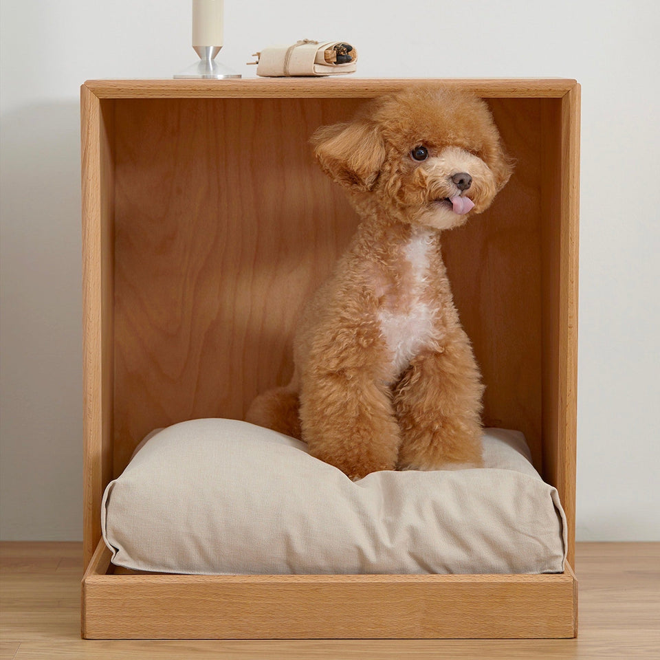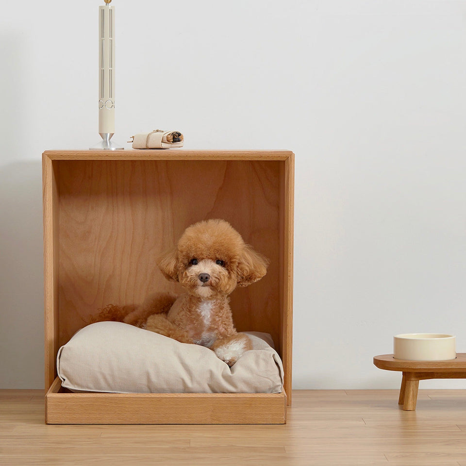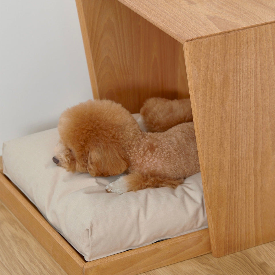 天板部分はものが置けるように広くなっているので、愛犬には快適なハウスとして、飼い主にはソファやベッドなどのサイドテーブルとしてお使いいただけます。