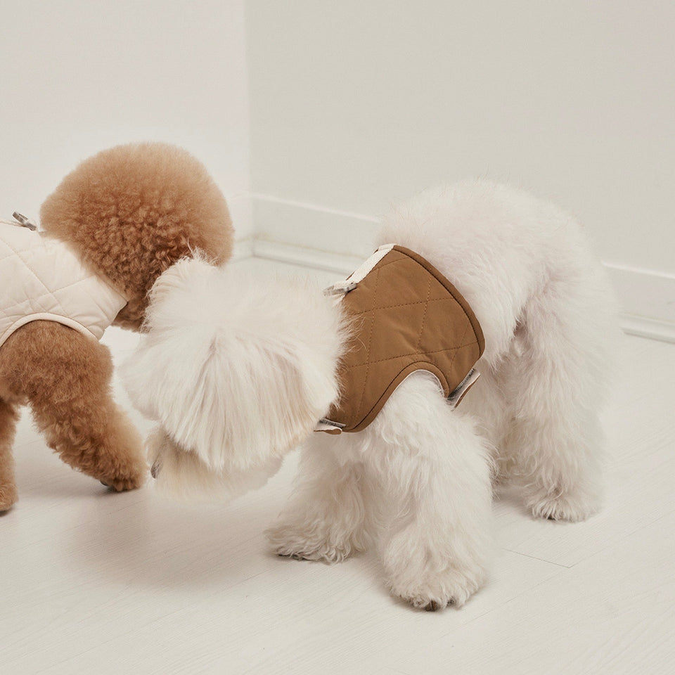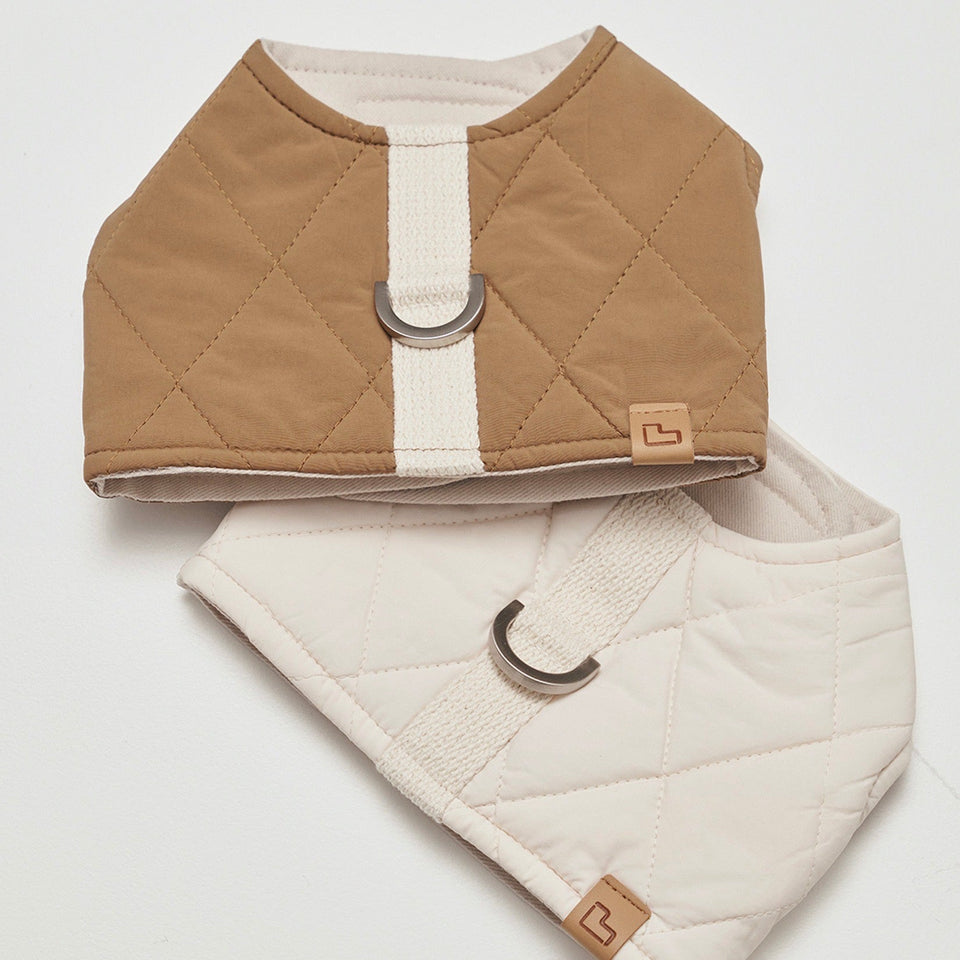 表地は軽くて汚れに強いキルティング、裏地は保温性に優れた起毛素材で製作されているので、耐久性の高く寒い季節には日常使いにとても良いハーネスです!