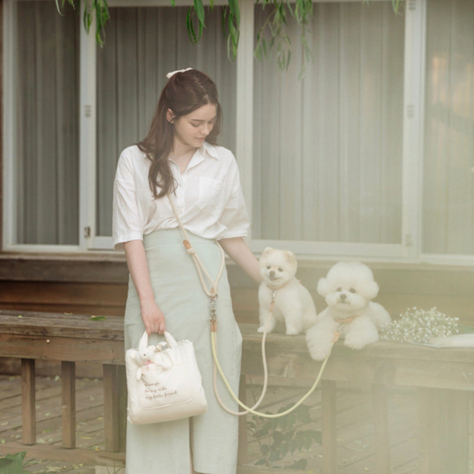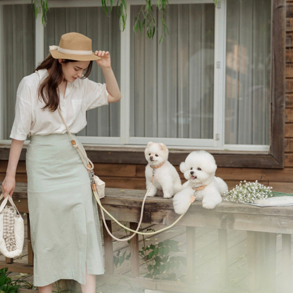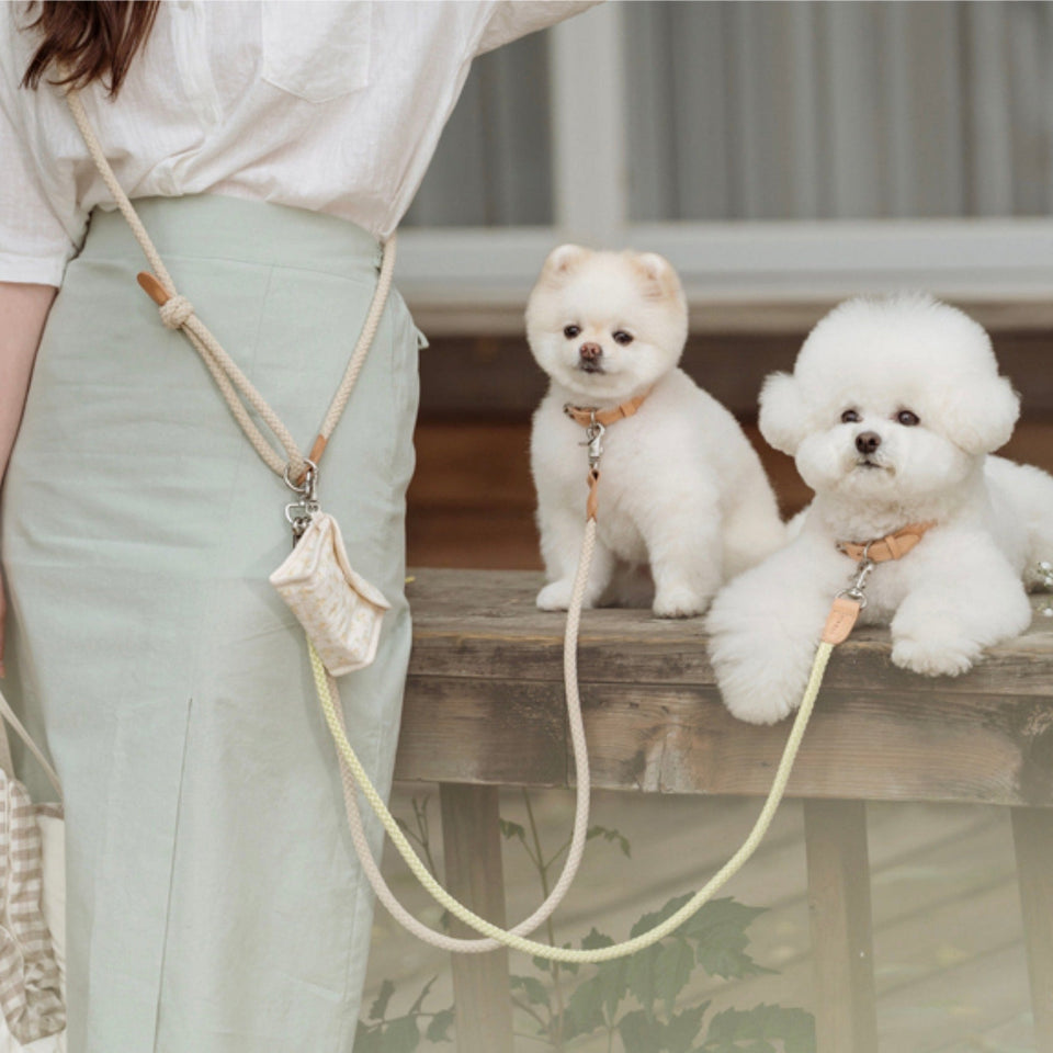 多頭飼いの方はこのマルチリーシュメイン1本に対して、繋ぎたいペットの頭数分だけ別売のサブリーシュを繋ぐことで同時に散歩もすることができます!