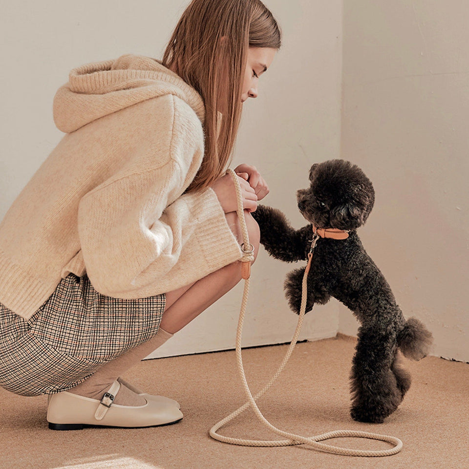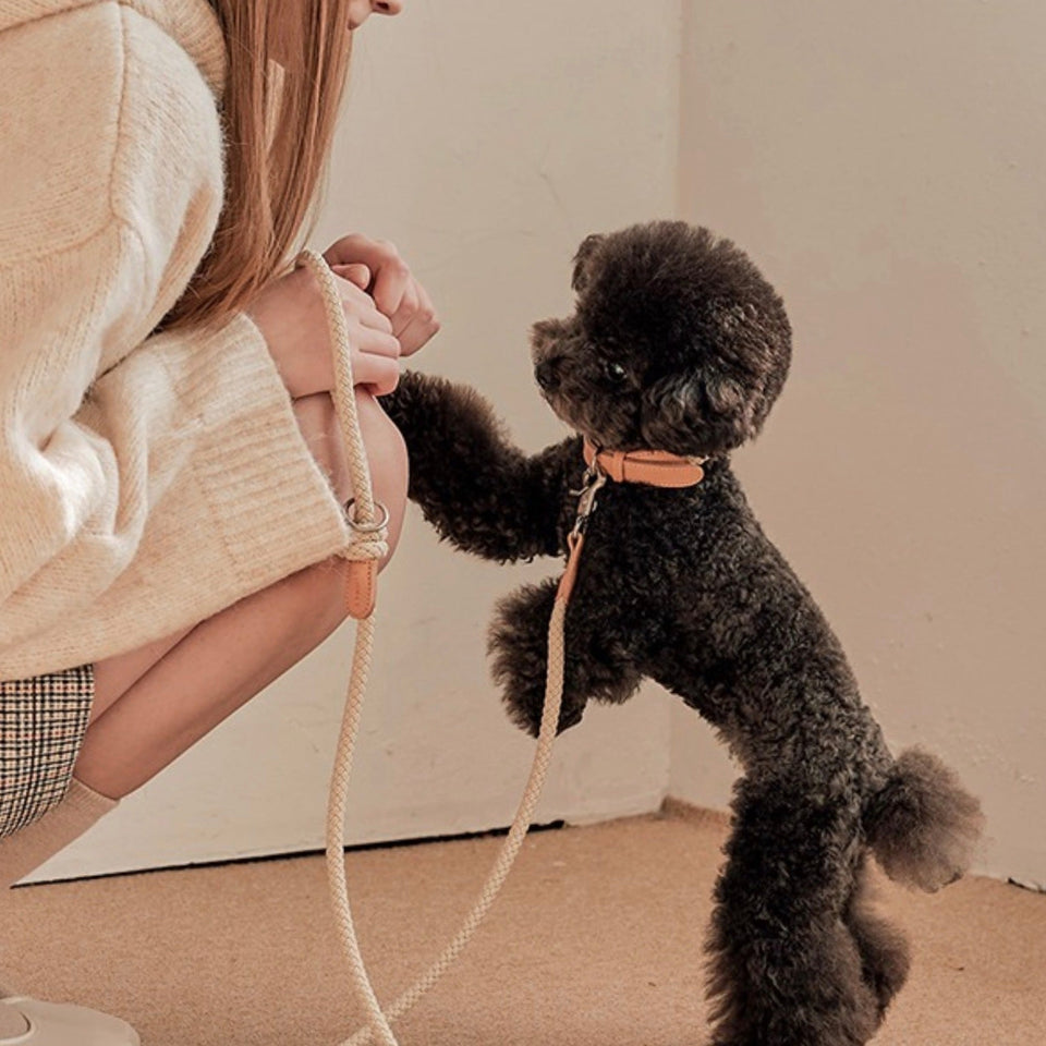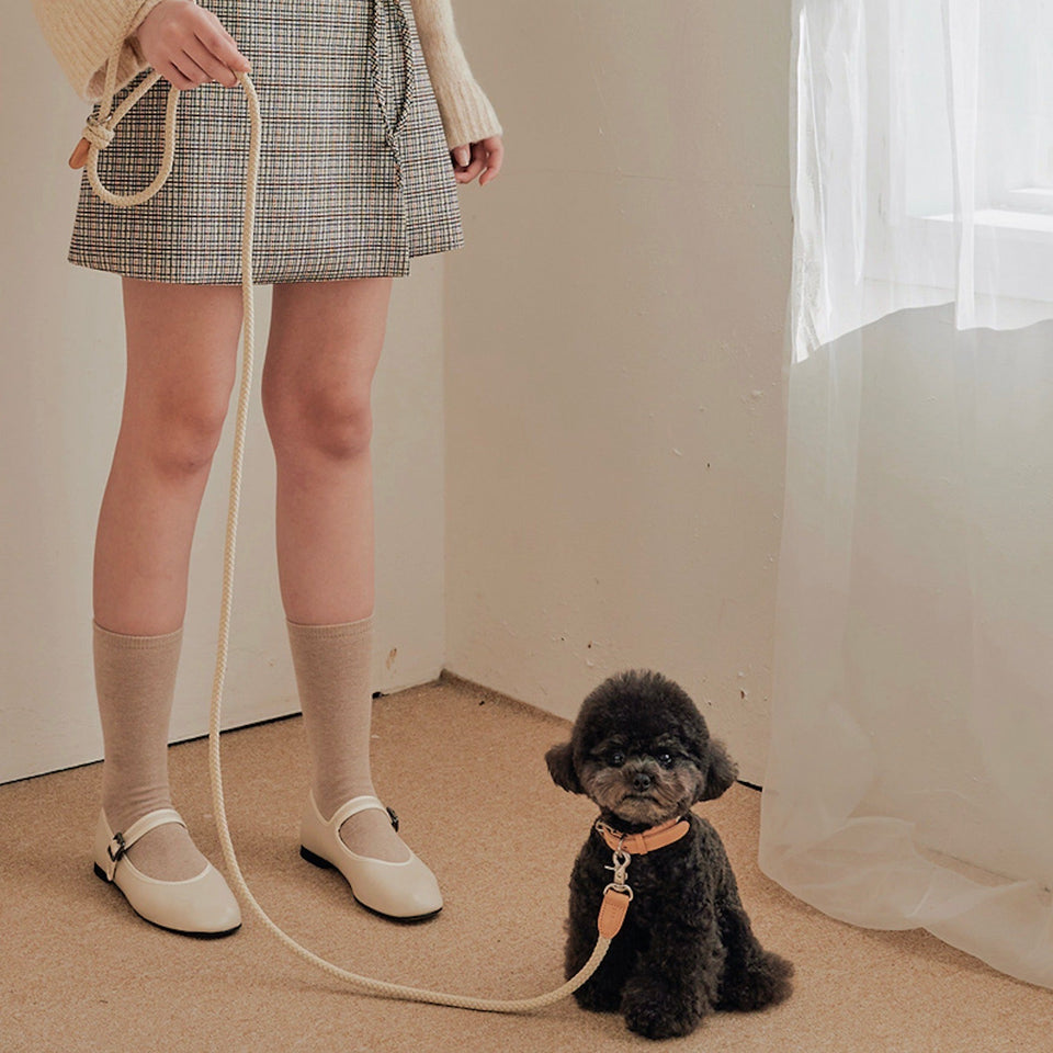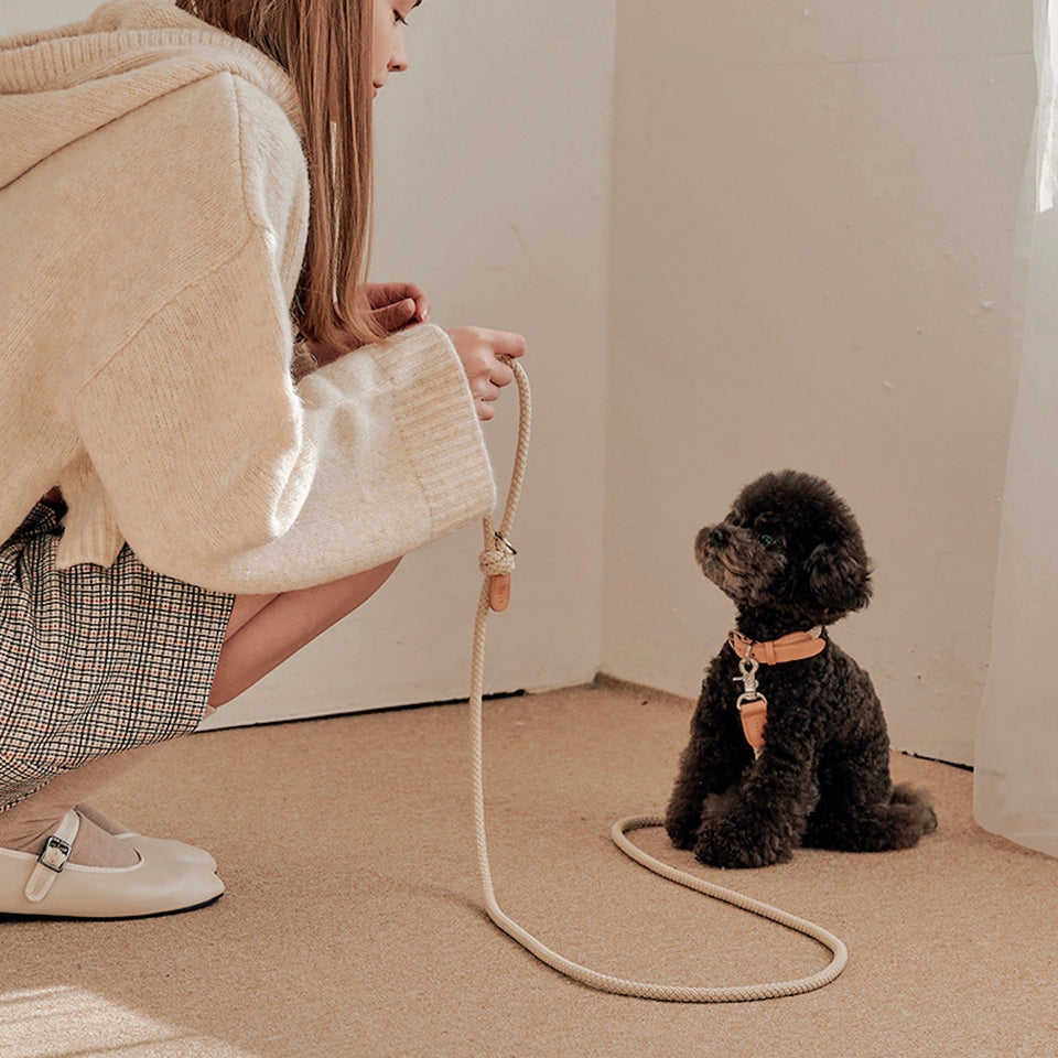 『優しい色味が特徴の天然革のレザーとロープの組み合わせがおしゃれなブランドNo.1人気の首輪』