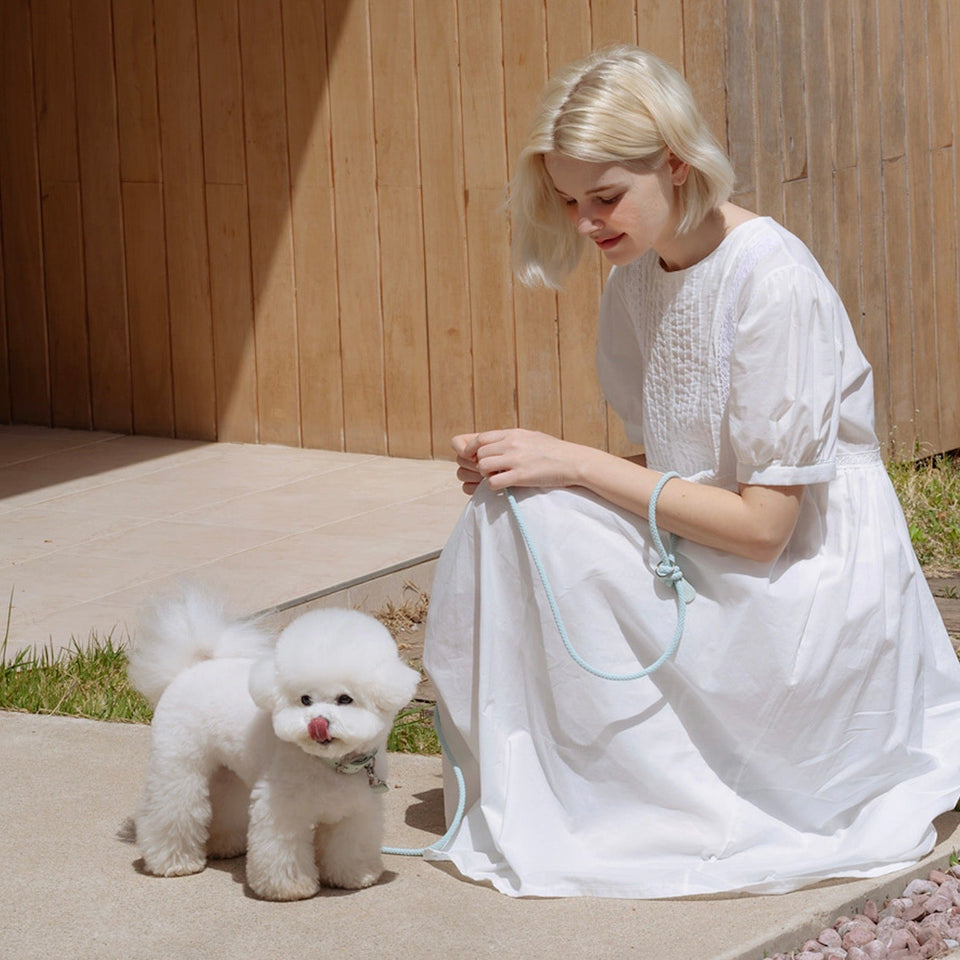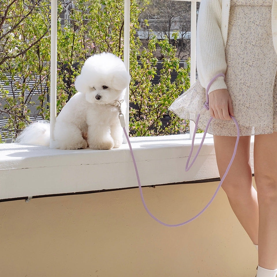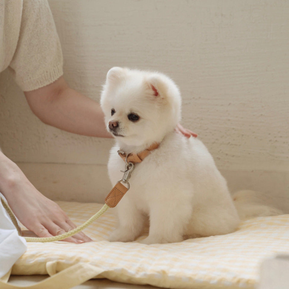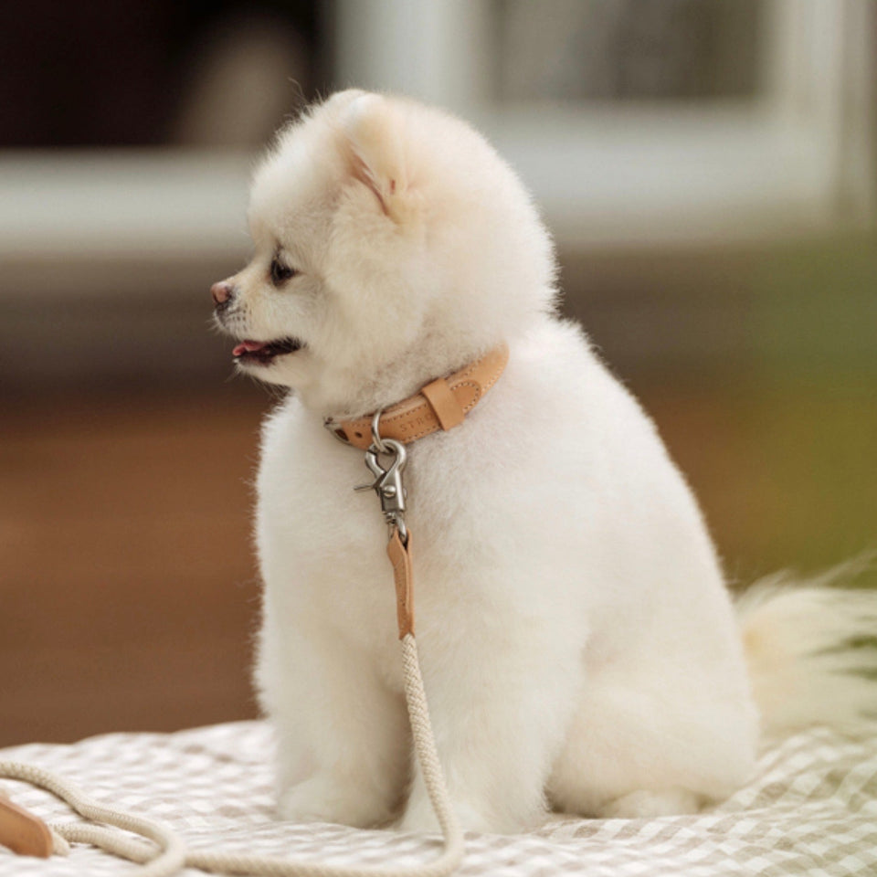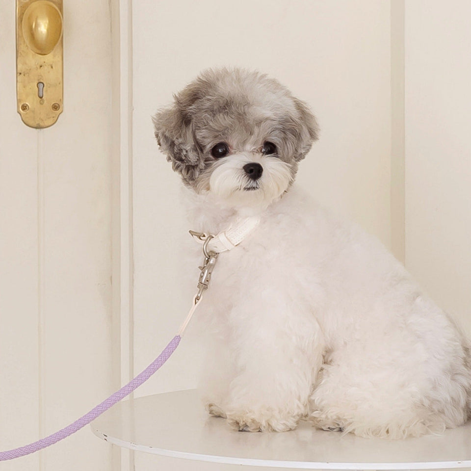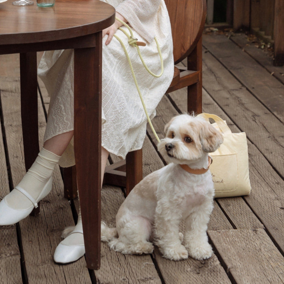 『優しい色味が特徴の天然革のレザーとロープの組み合わせがおしゃれな細めのリーシュ』