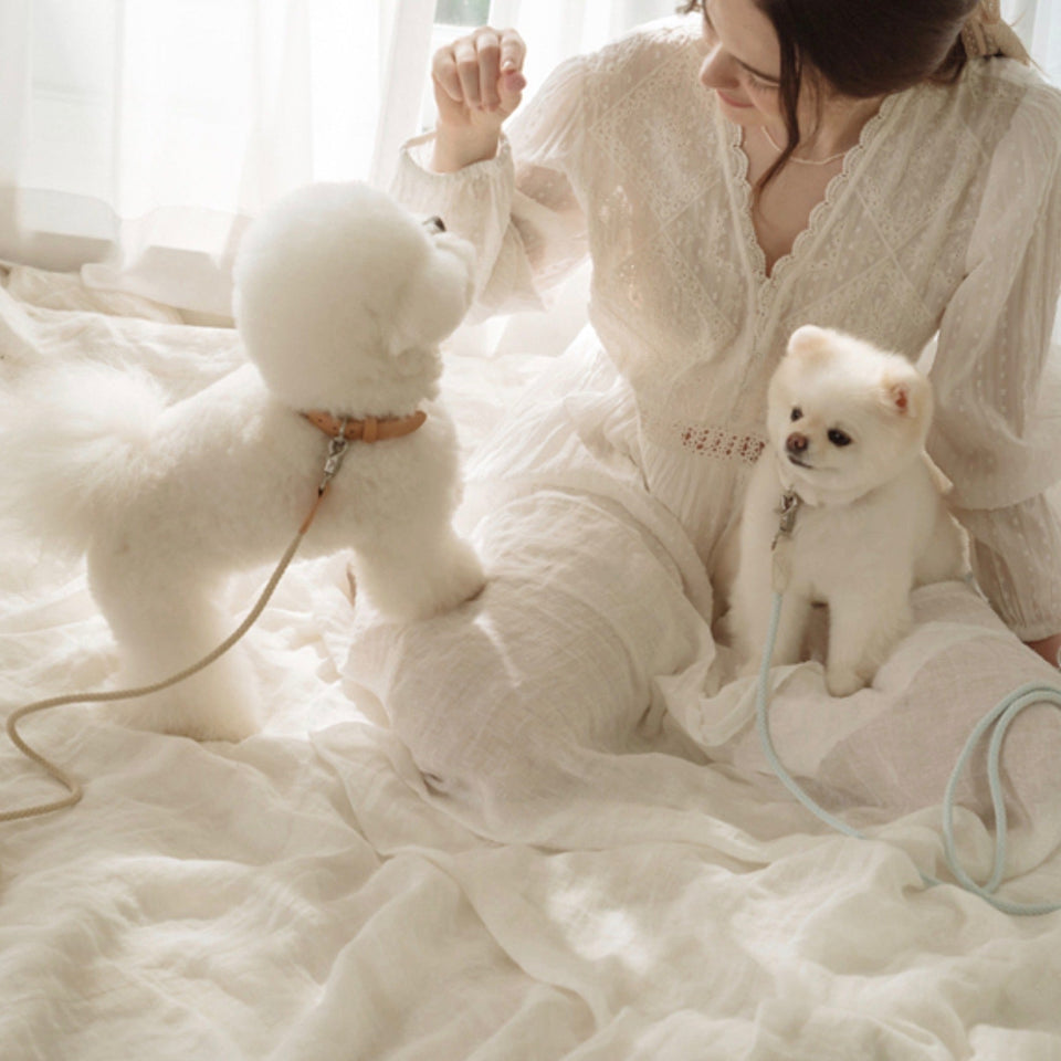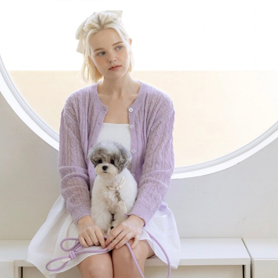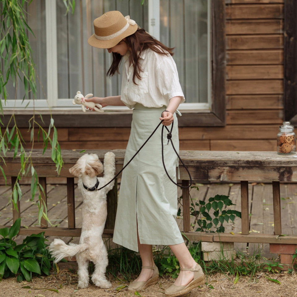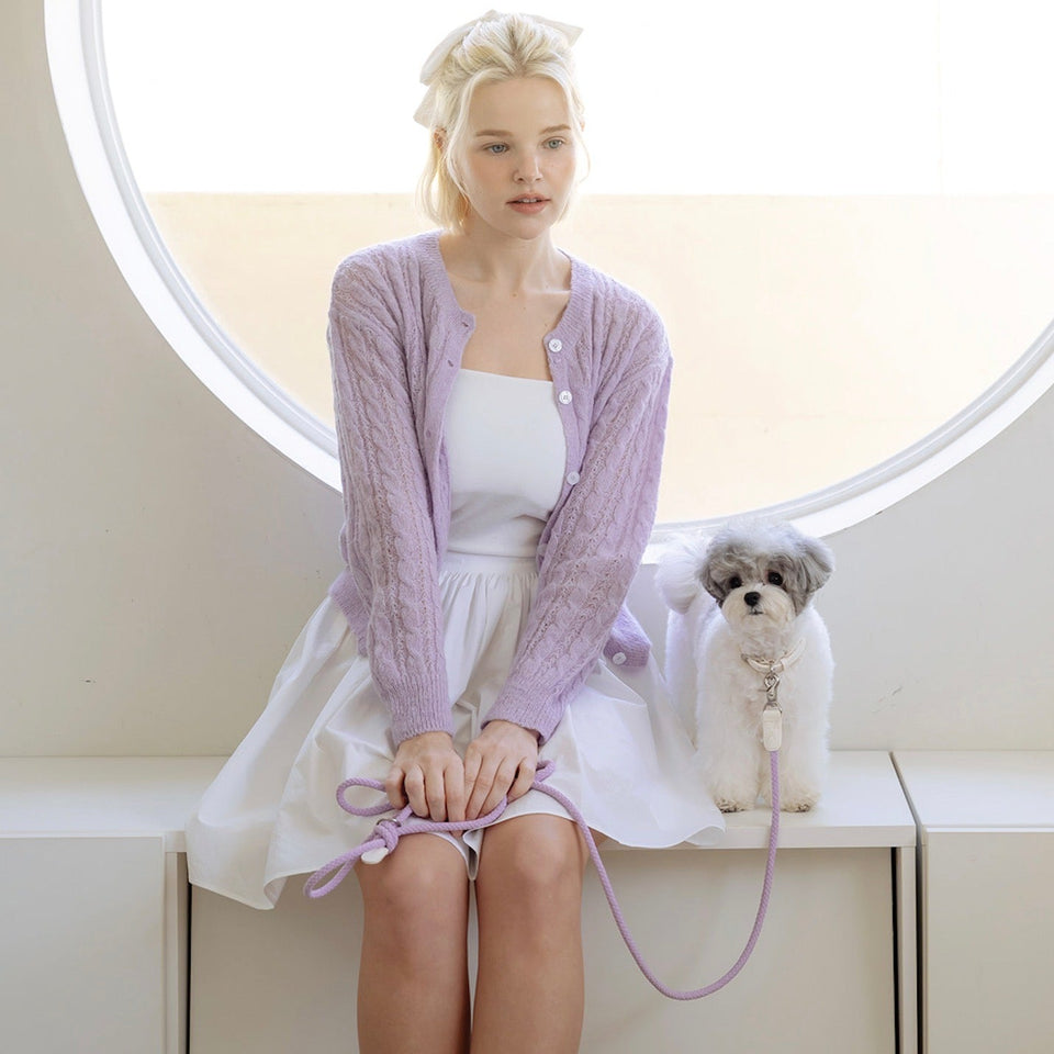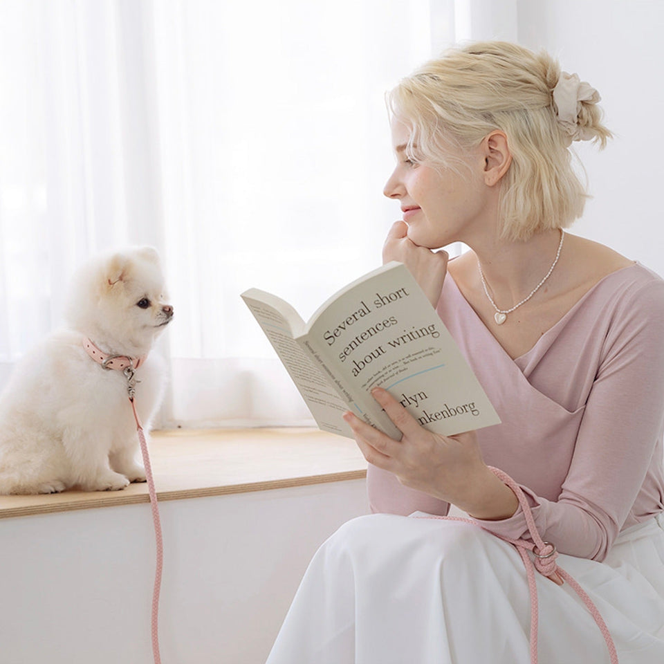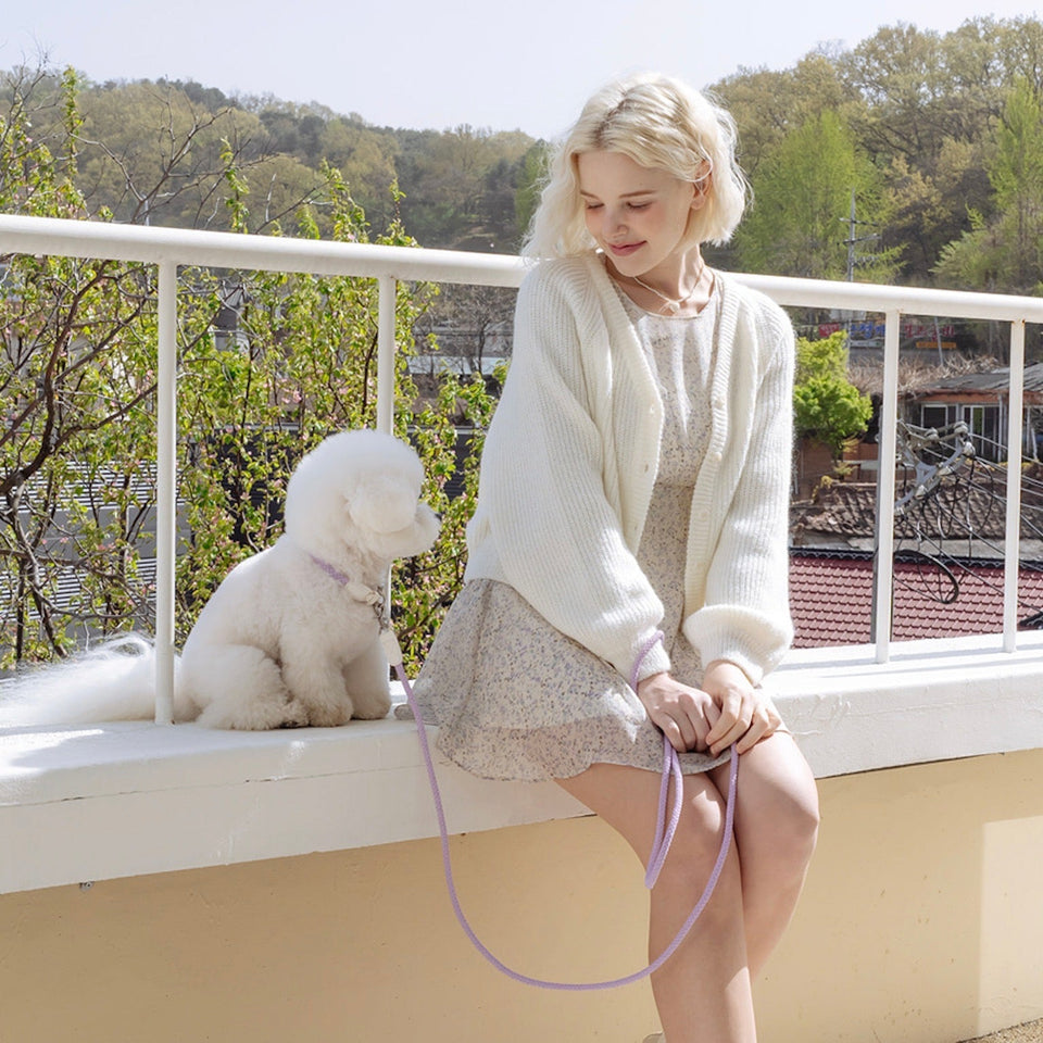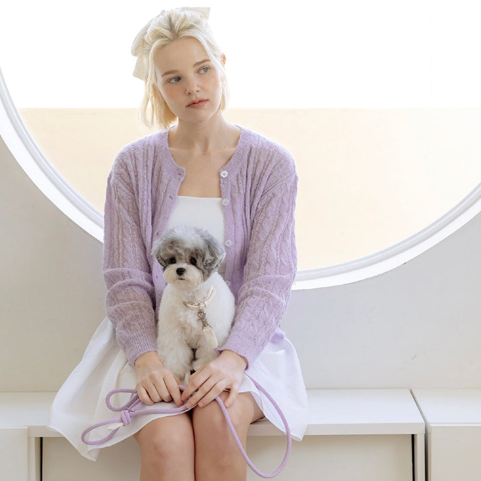 『優しい色味が特徴の天然革のレザーとロープの組み合わせがおしゃれな細めのリーシュ』
