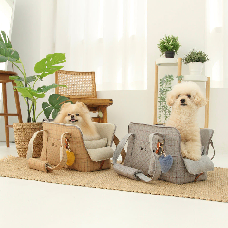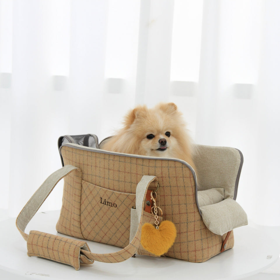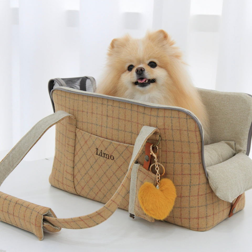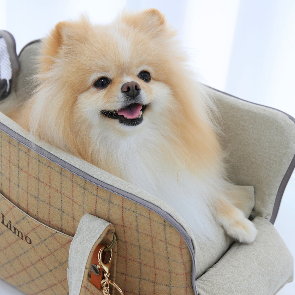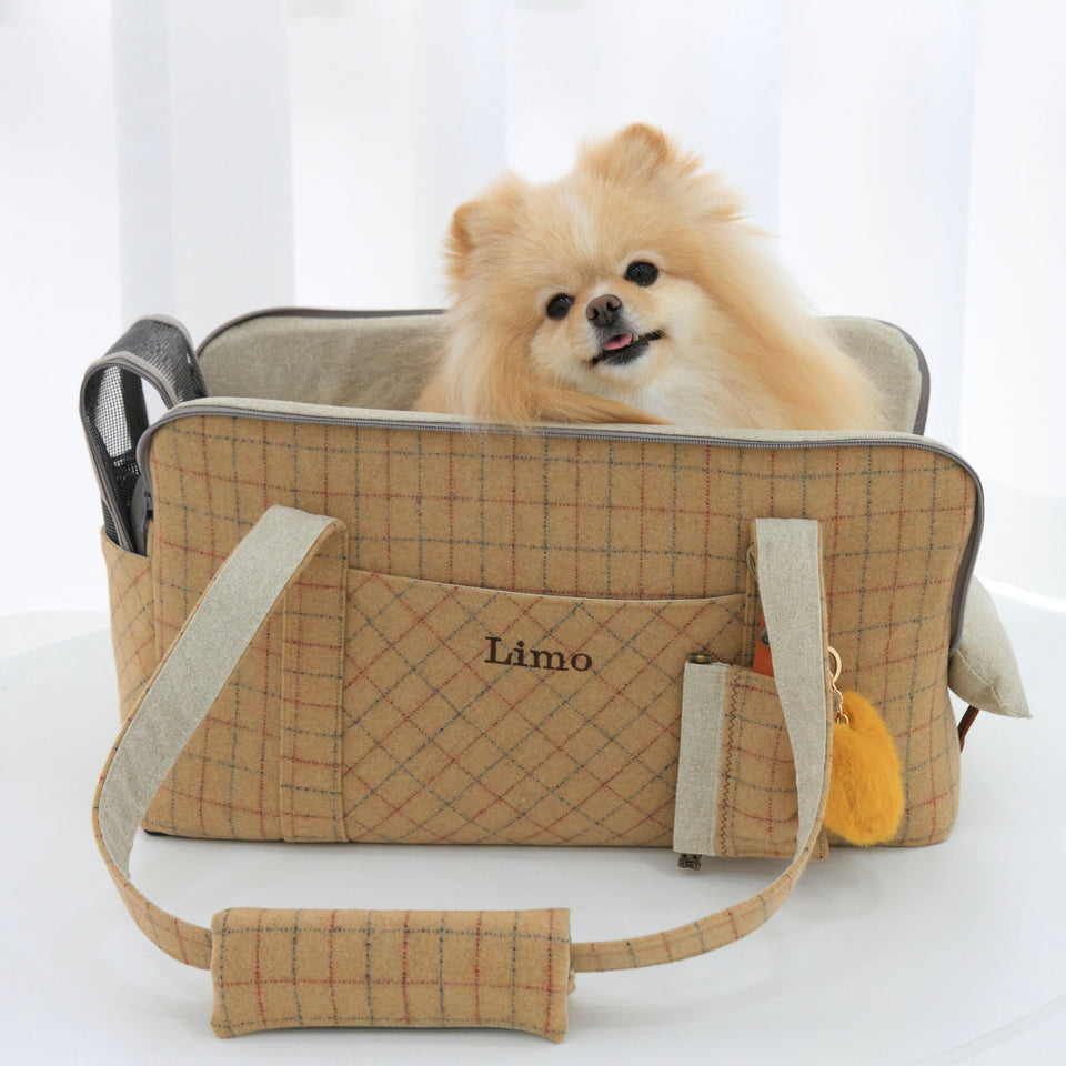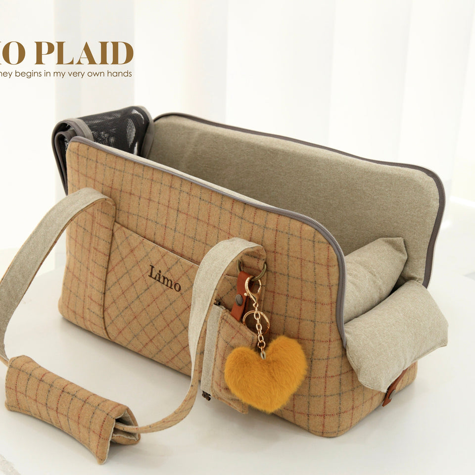 愛犬にとって常に良いものを使いたい!という気持ちから誕生したリムジンのような乗り心地のLIMO PLAID BAGはもちもちで肌触りの最高級のウール生地で作られています。