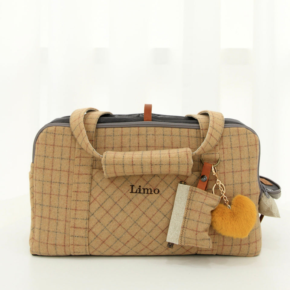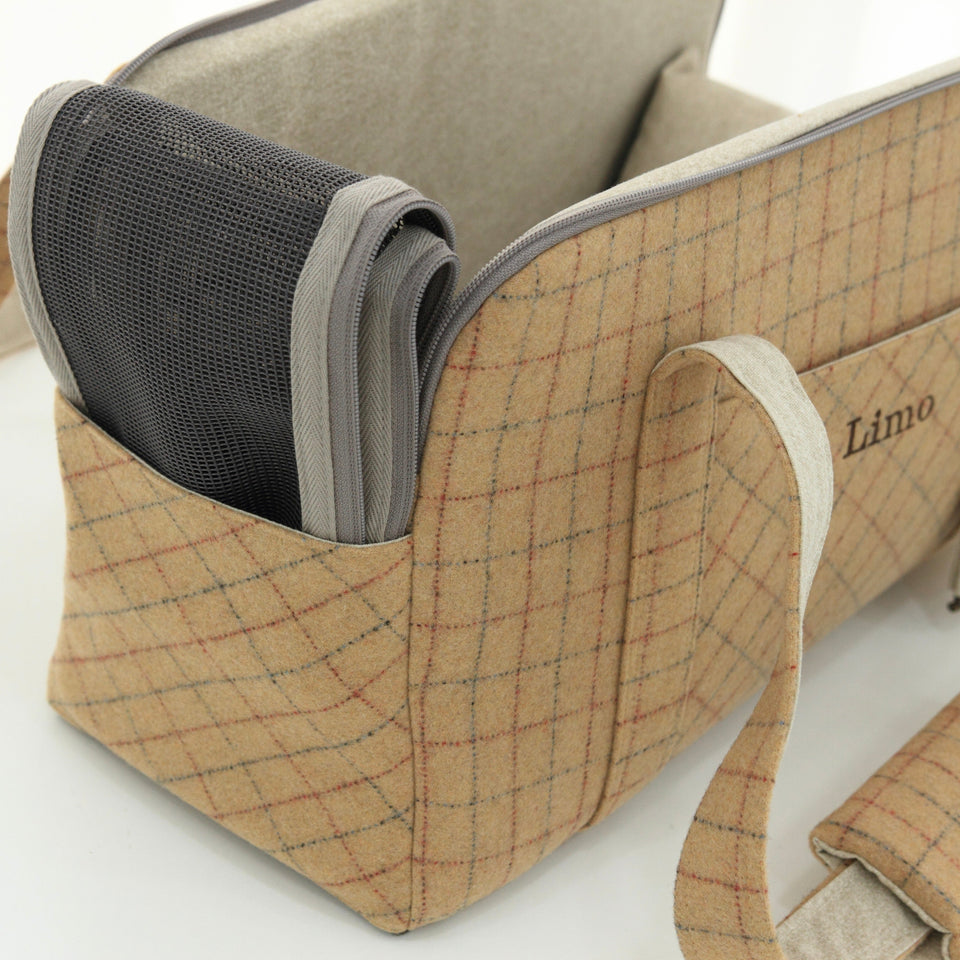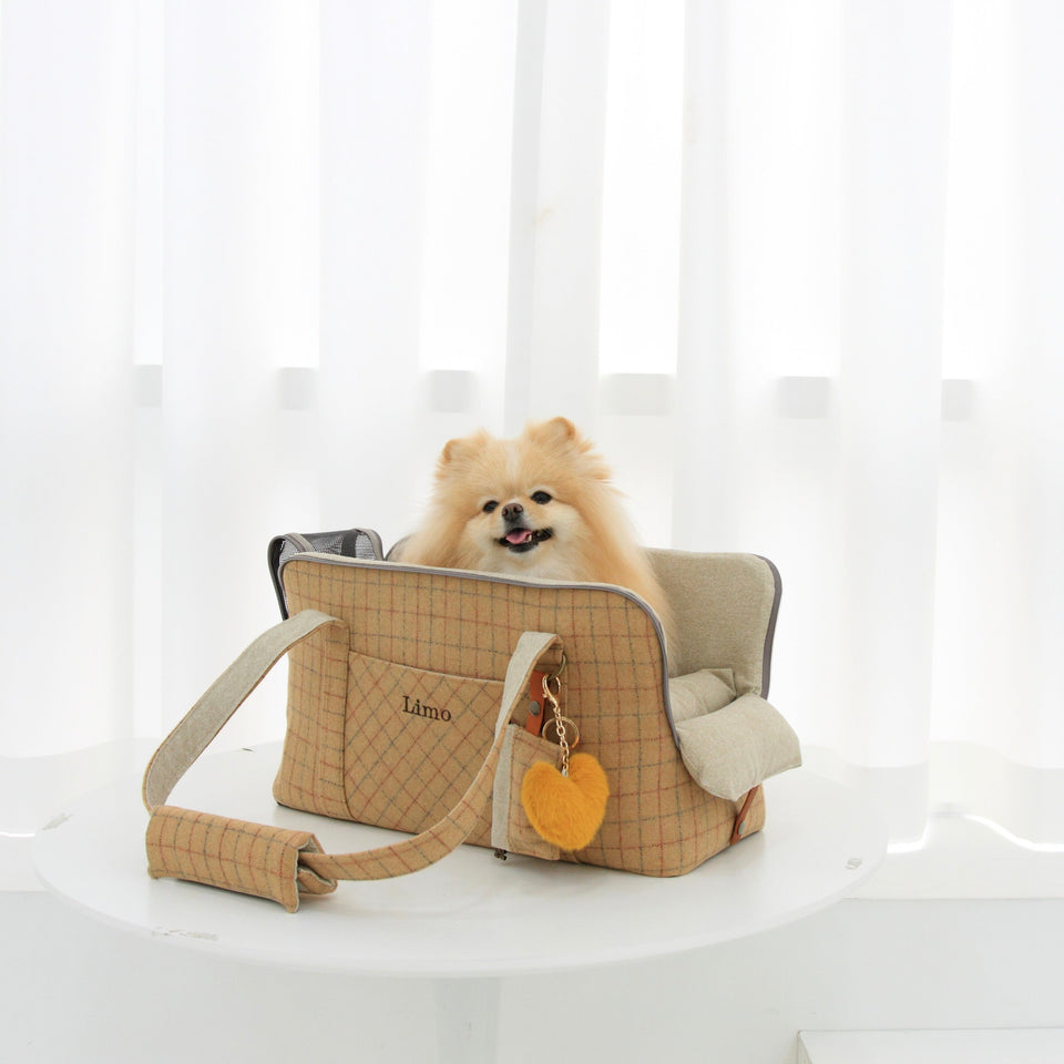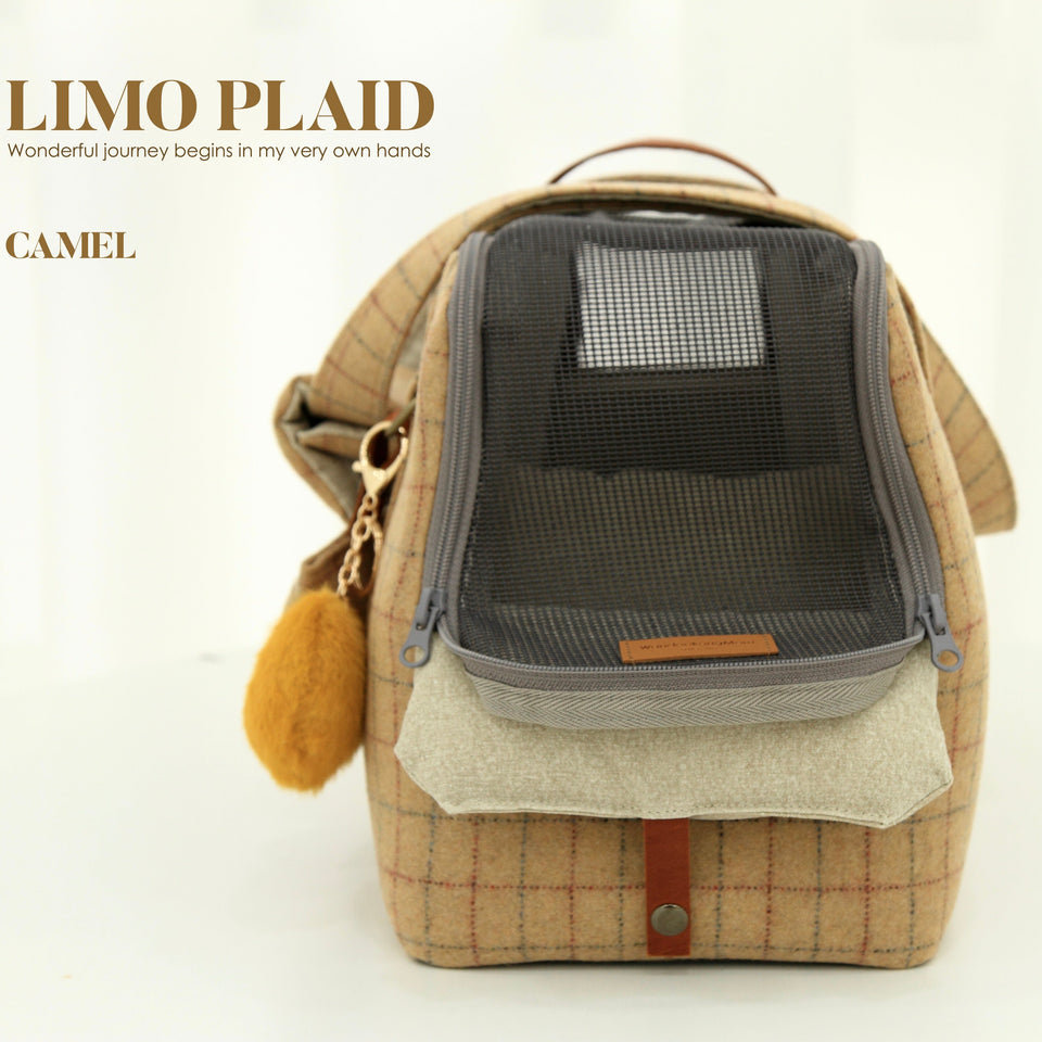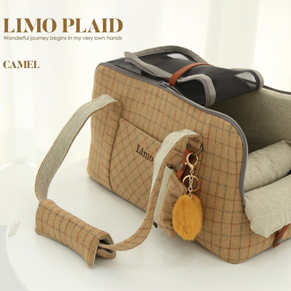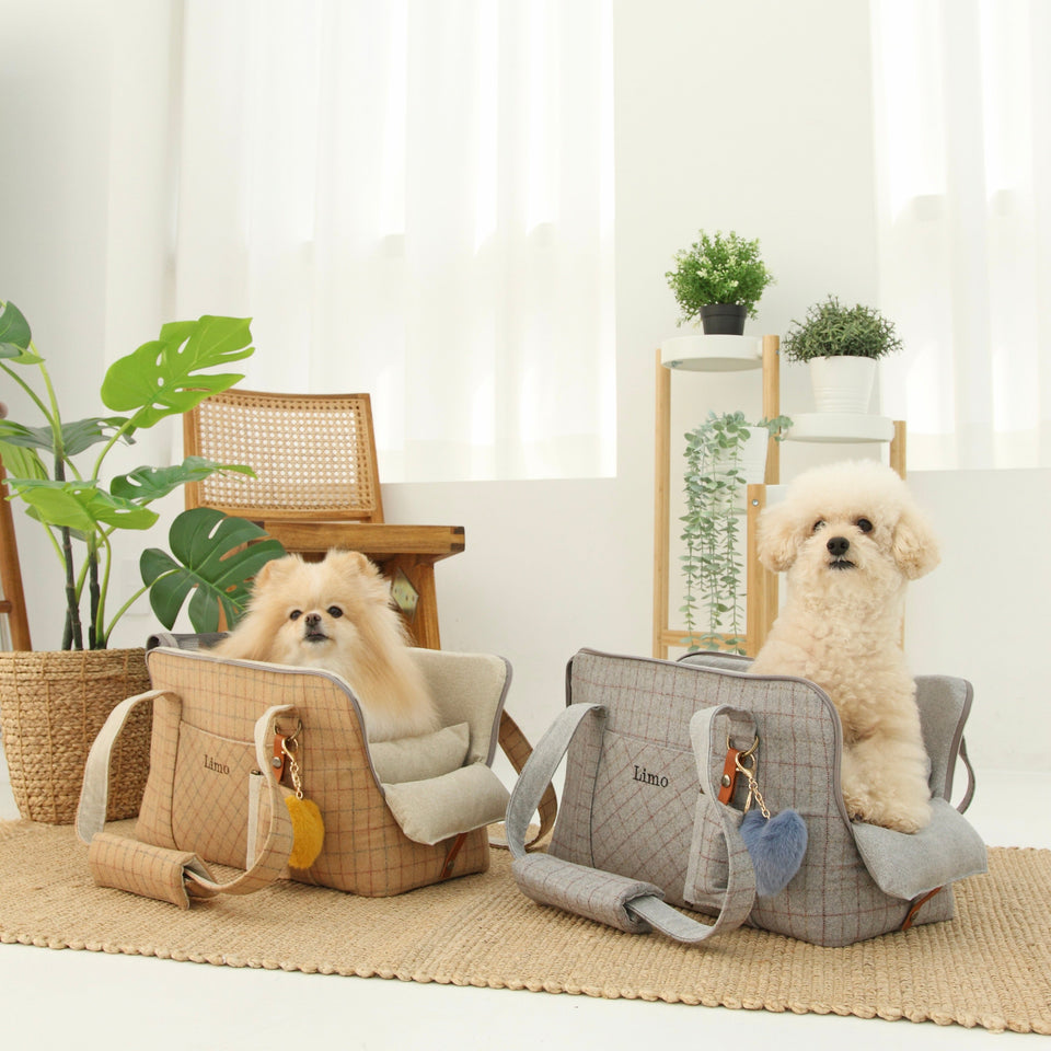 愛犬にとって常に良いものを使いたい!という気持ちから誕生したリムジンのような乗り心地のLIMO PLAID BAGはもちもちで肌触りの最高級のウール生地で作られています。