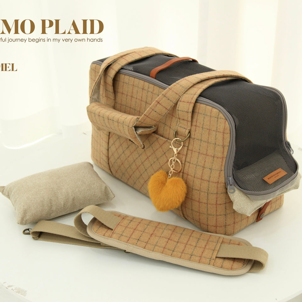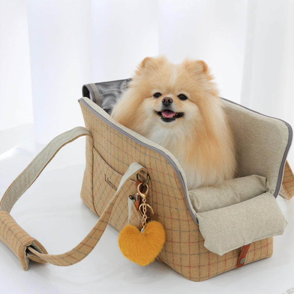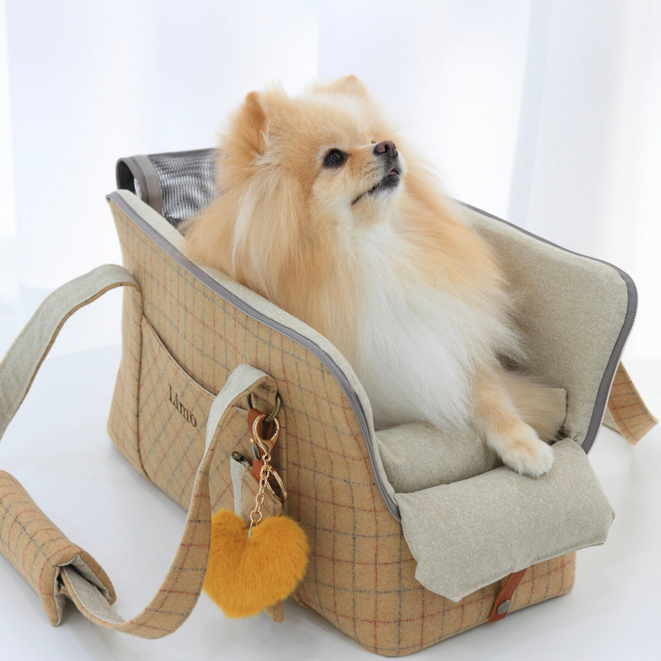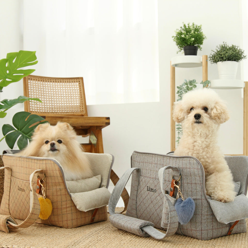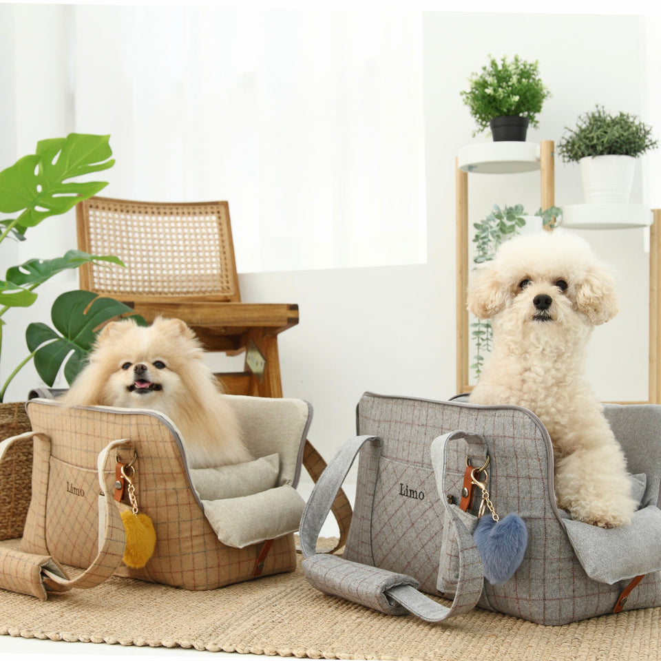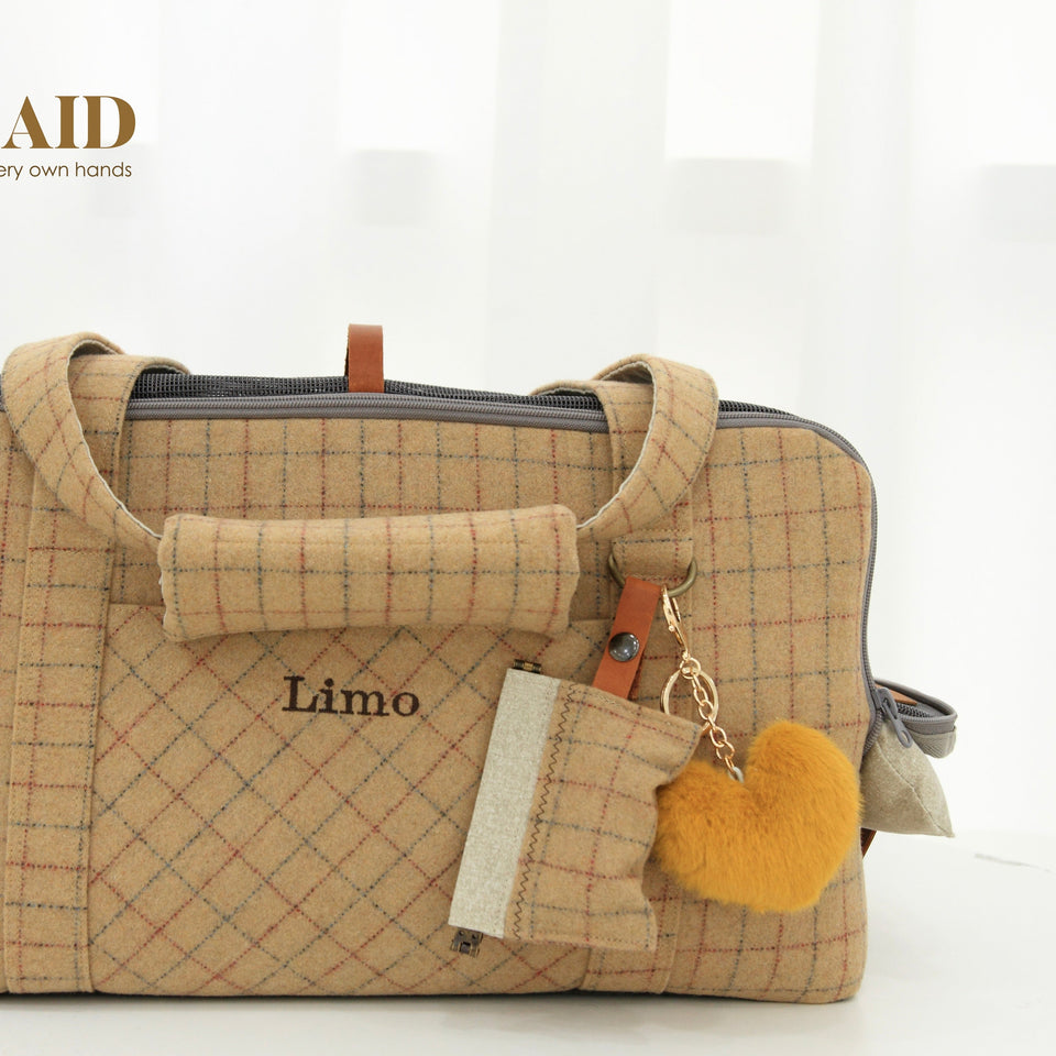 愛犬にとって常に良いものを使いたい!という気持ちから誕生したリムジンのような乗り心地のLIMO PLAID BAGはもちもちで肌触りの最高級のウール生地で作られています。