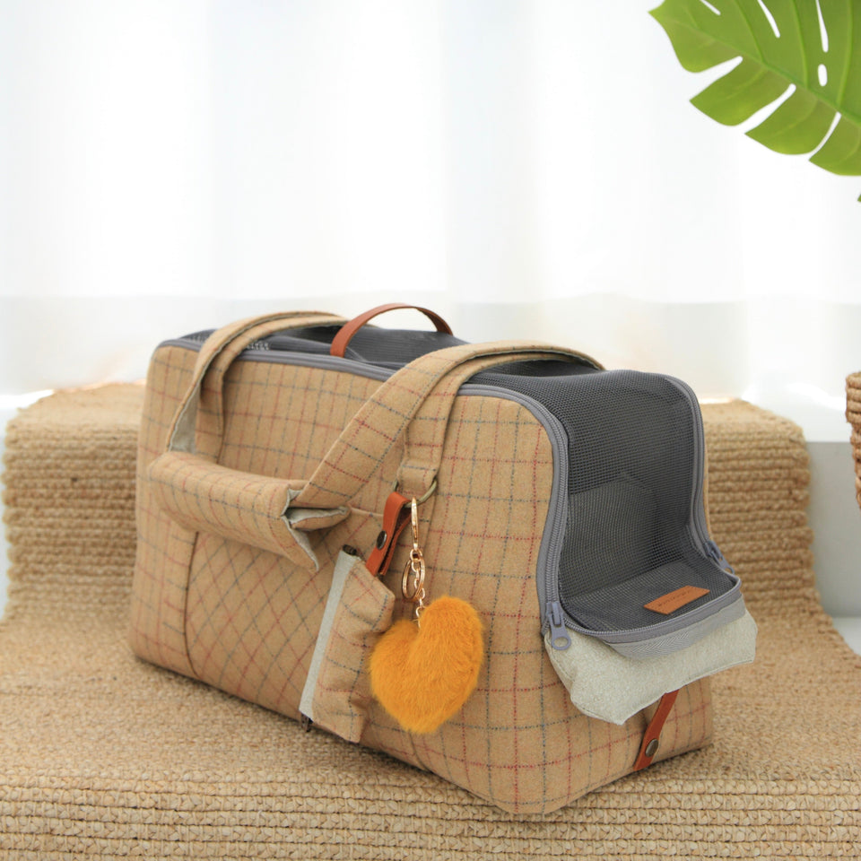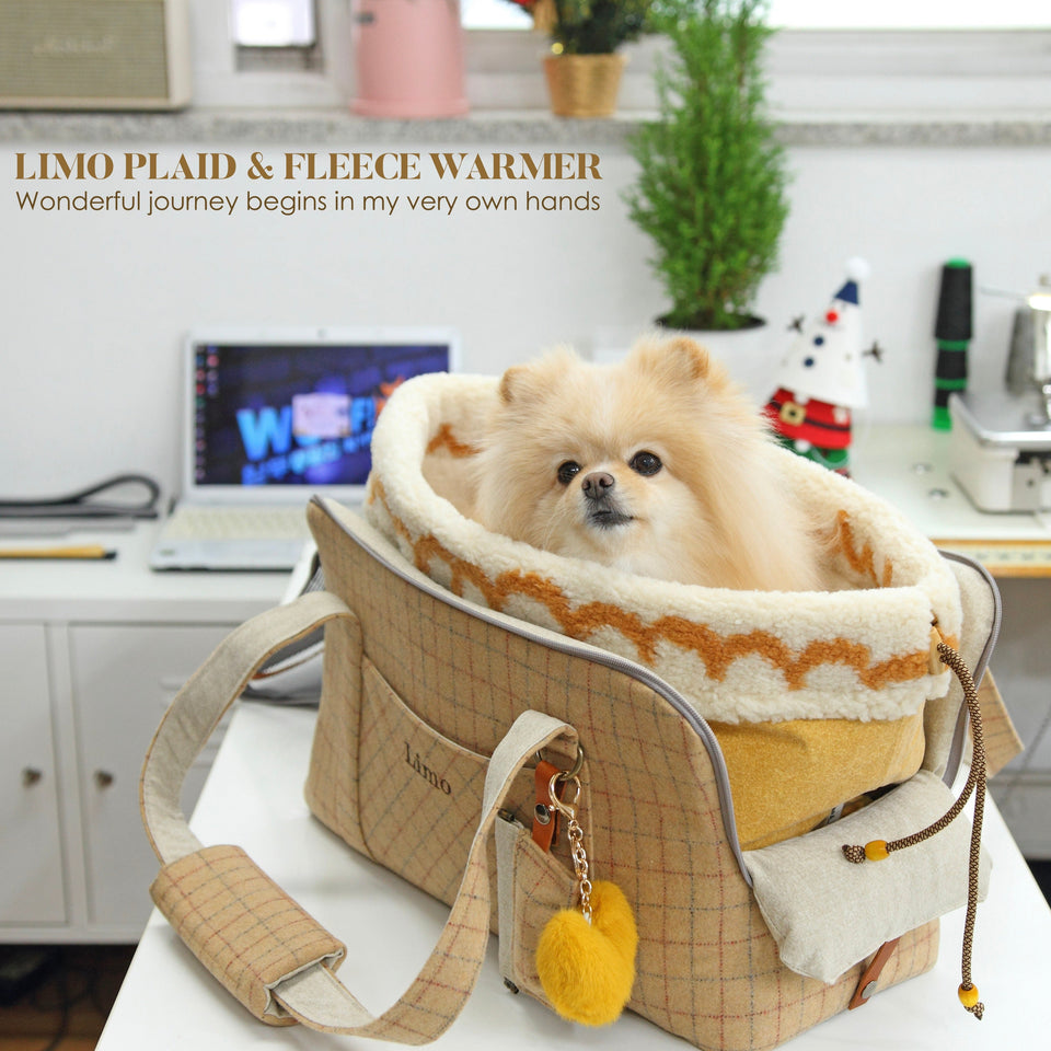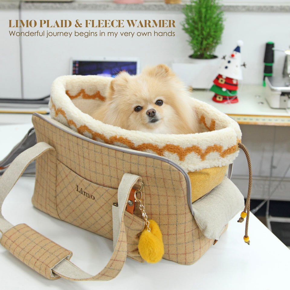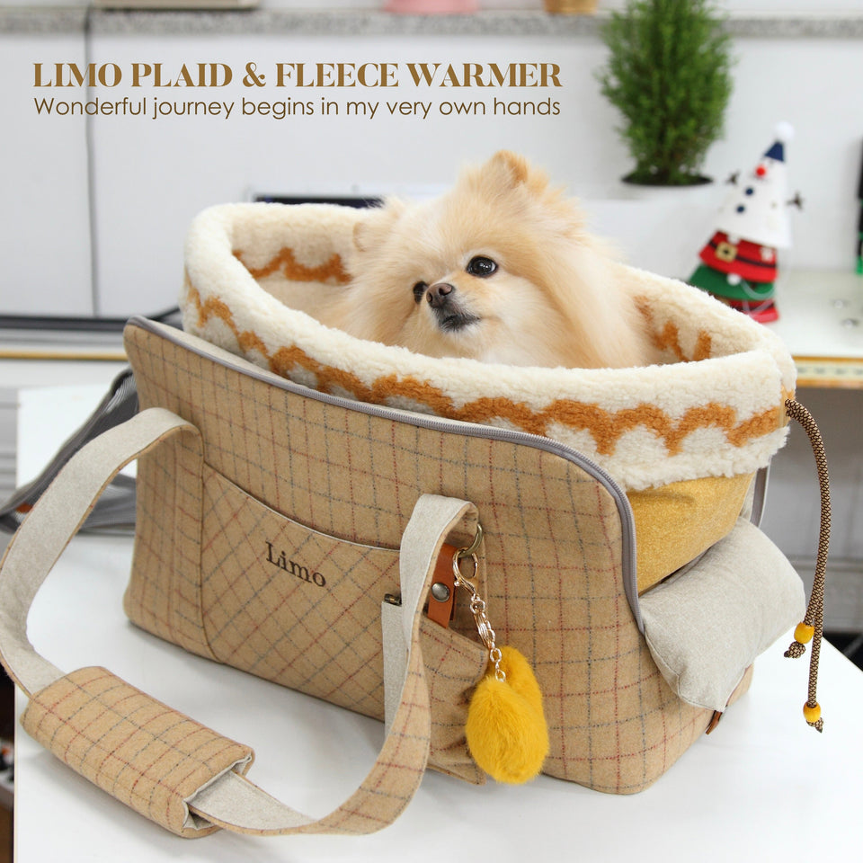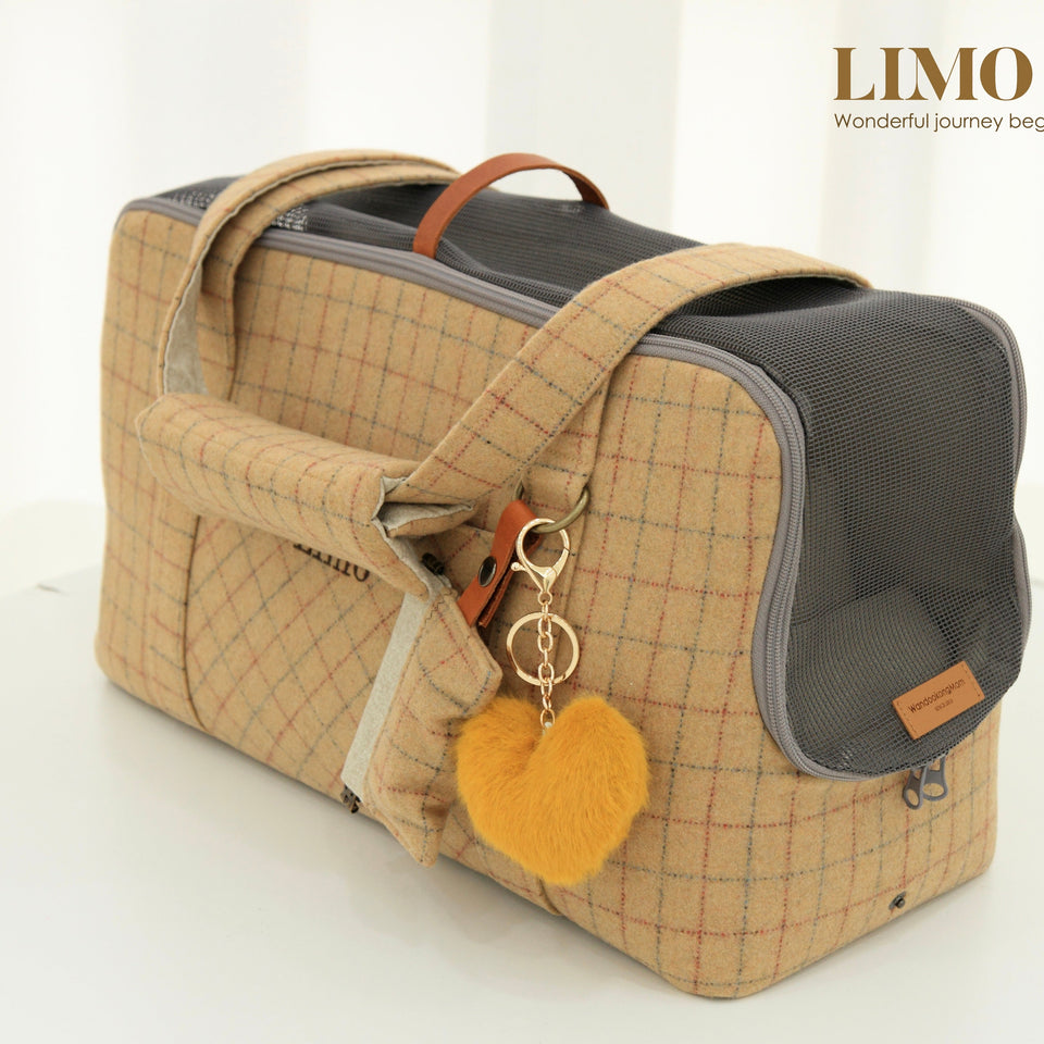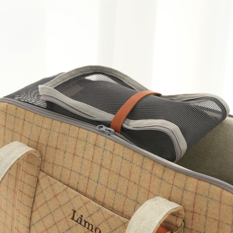愛犬にとって常に良いものを使いたい!という気持ちから誕生したリムジンのような乗り心地のLIMO PLAID BAGはもちもちで肌触りの最高級のウール生地で作られています。