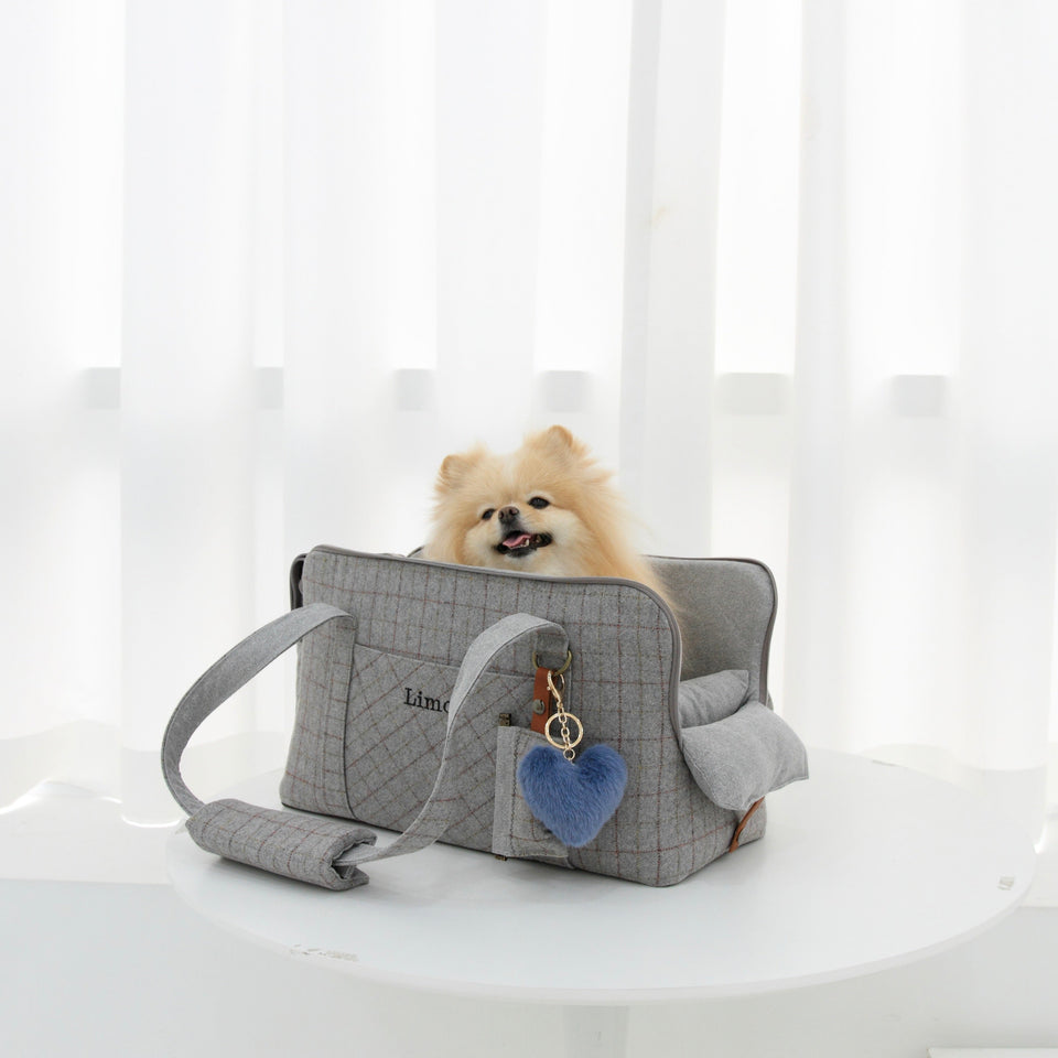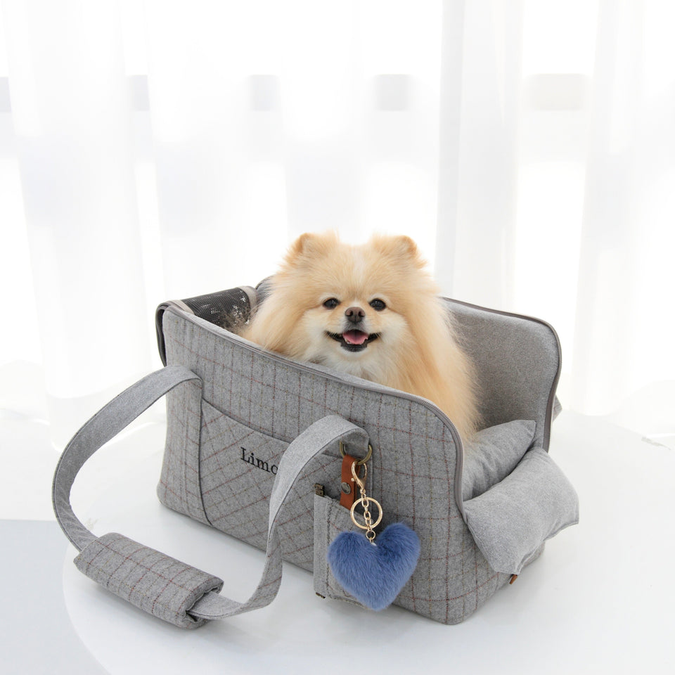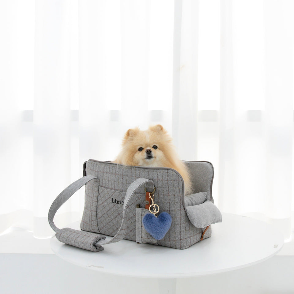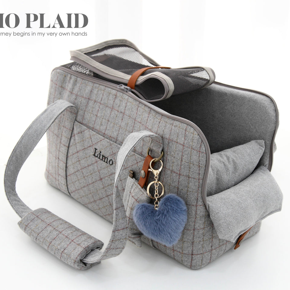 愛犬にとって常に良いものを使いたい!という気持ちから誕生したリムジンのような乗り心地のLIMO PLAID BAGはもちもちで肌触りの最高級のウール生地で作られています。