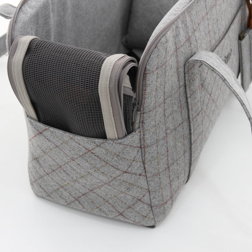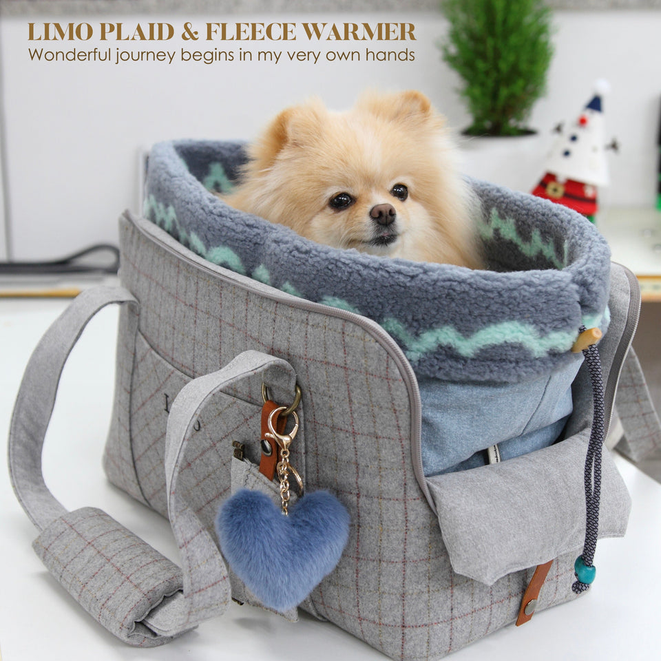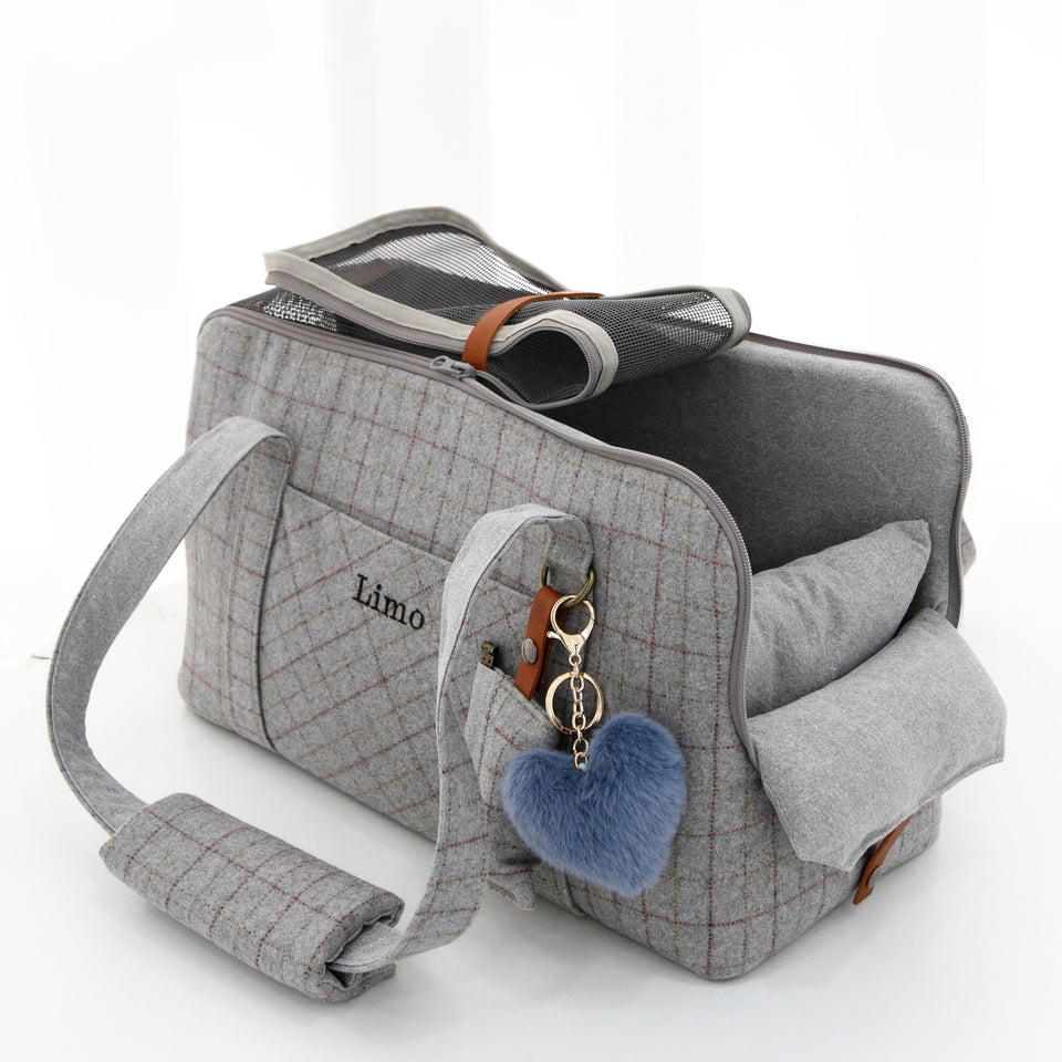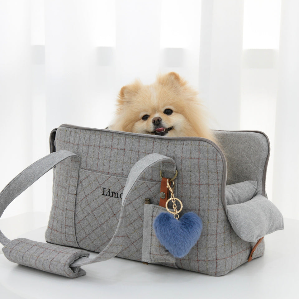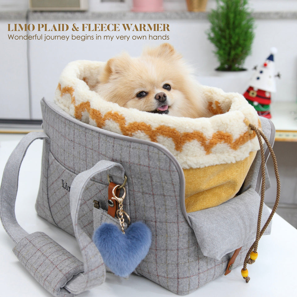 愛犬にとって常に良いものを使いたい!という気持ちから誕生したリムジンのような乗り心地のLIMO PLAID BAGはもちもちで肌触りの最高級のウール生地で作られています。