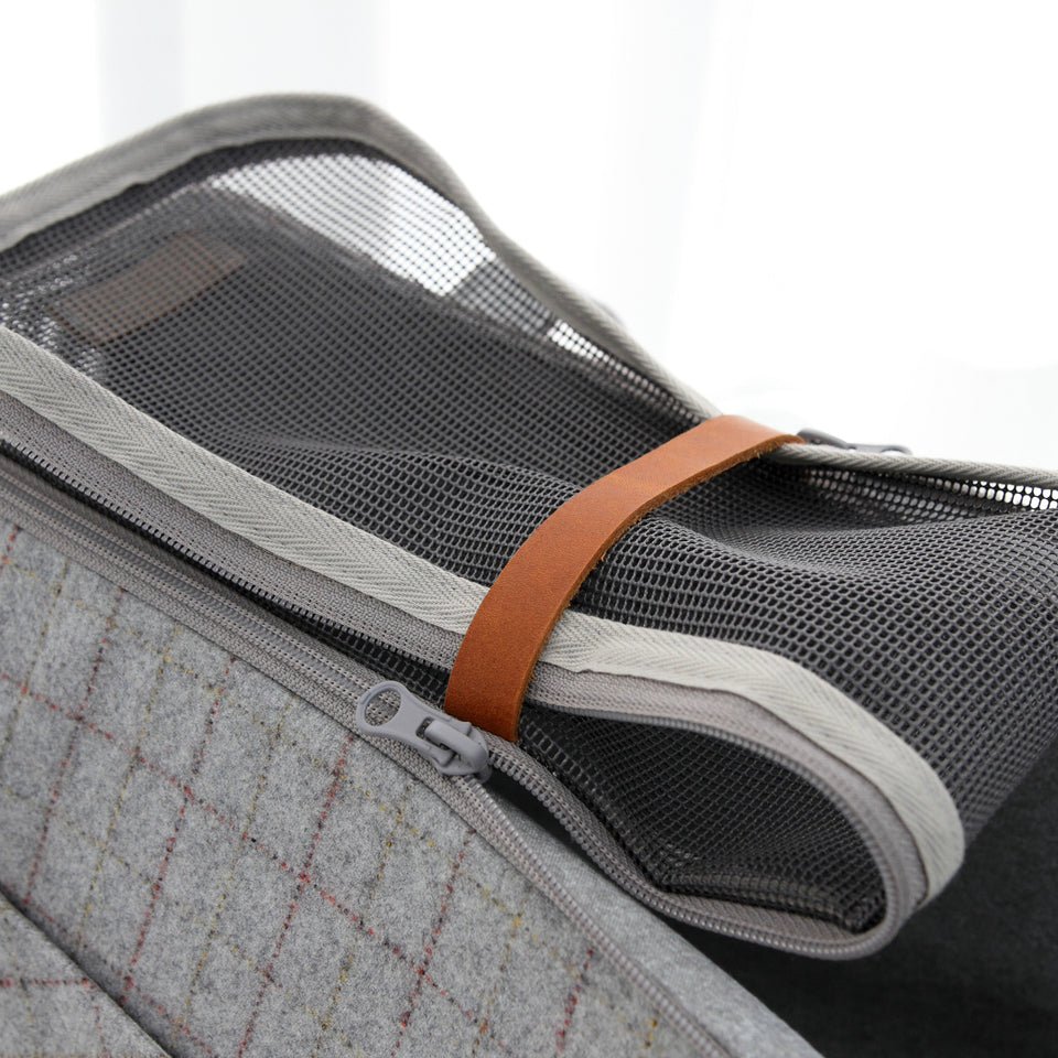 底板の丈夫さとクッション性は愛犬の体への負担や耐久性を考える上で欠かせません。このキャリーバッグに合わせて研究を重ねて作った底板は3cmの厚みにベッドのようなふんわりとしたクッション性と10kgの重さにも絶対に折れない耐久性を実現!底板のカバーは清潔さをキープするためにファスナーで簡単に外せて洗濯可能です。